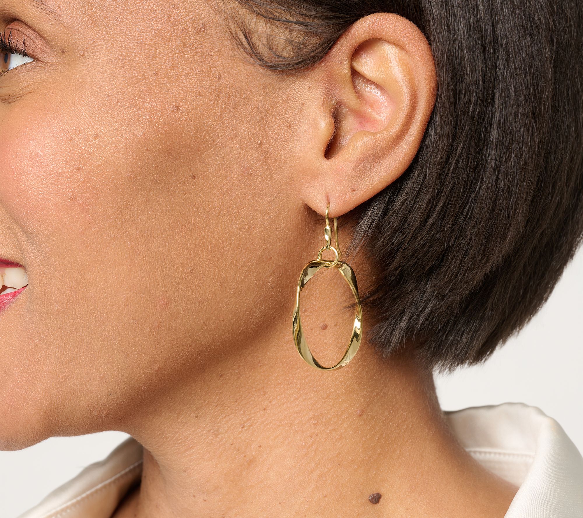 A small act can have a big impact. These 2" dangling rippled circle earrings are a beautiful way to accessorize every day with intention, celebrating the lives that have touched you -- or those you've touched. Give them to a dear friend, sister, or niece, and discover how the design's fluid curves and polished surfaces reflect the light, whether moving or standing still. From Christian James by Scott Grimes.