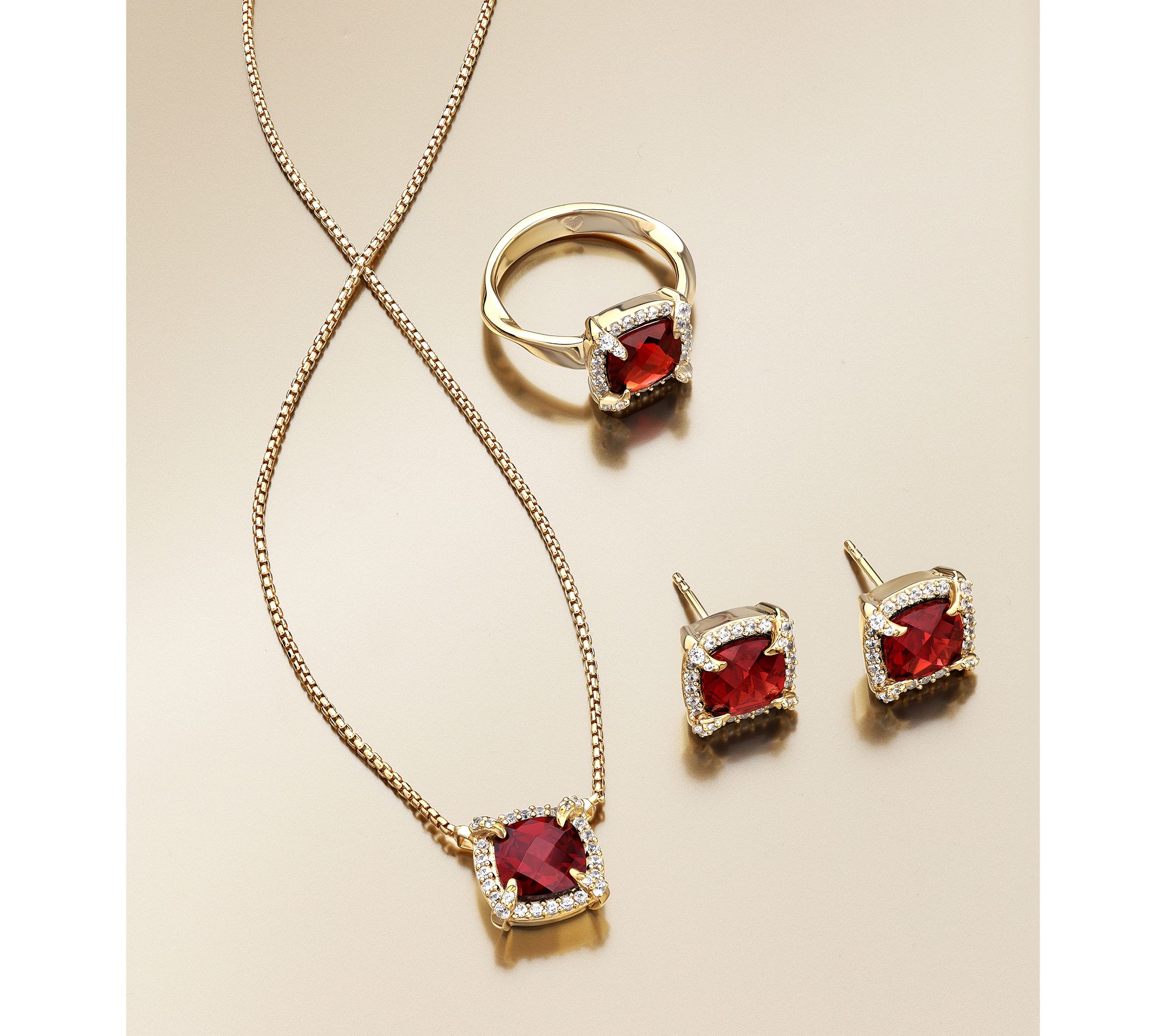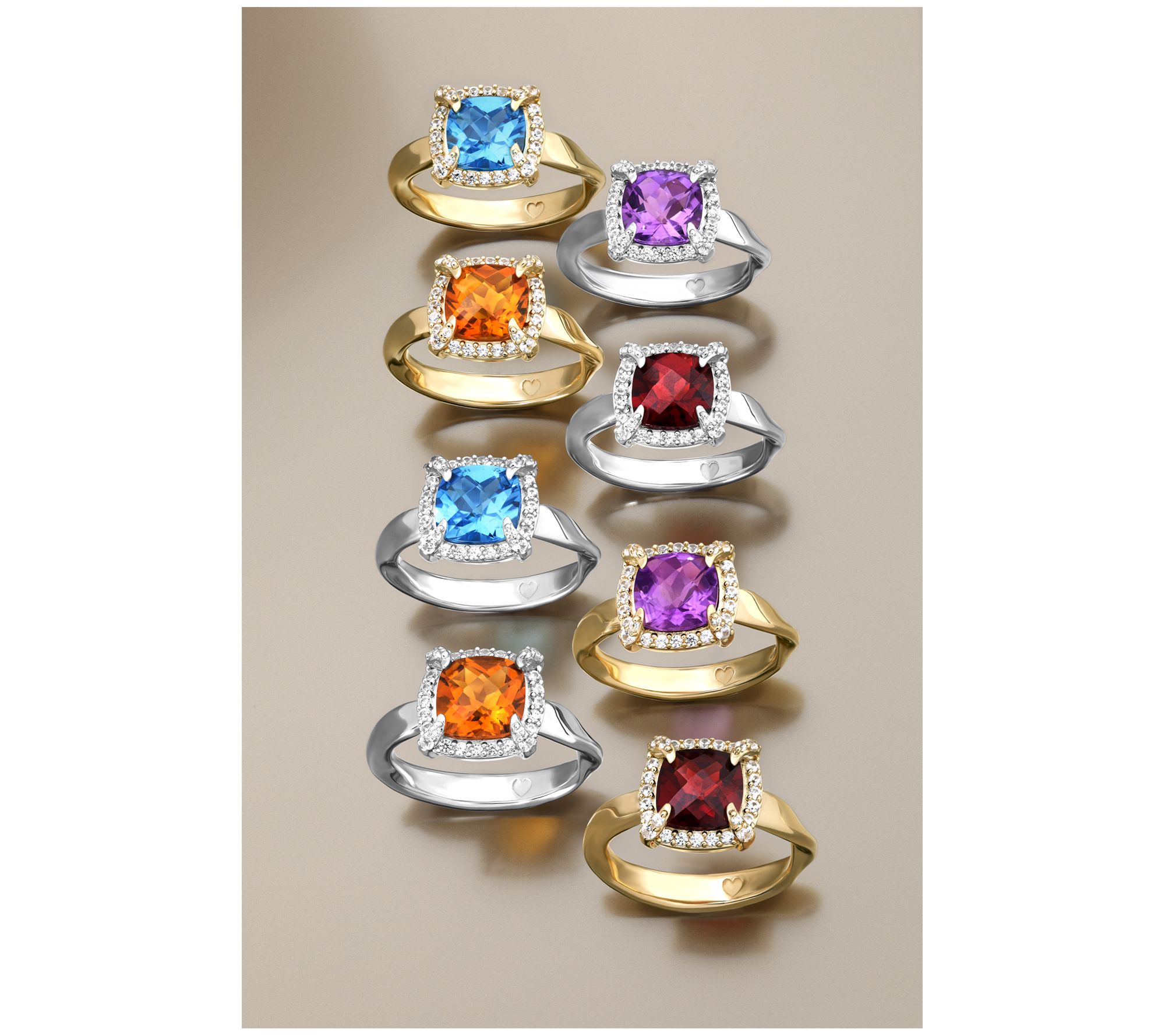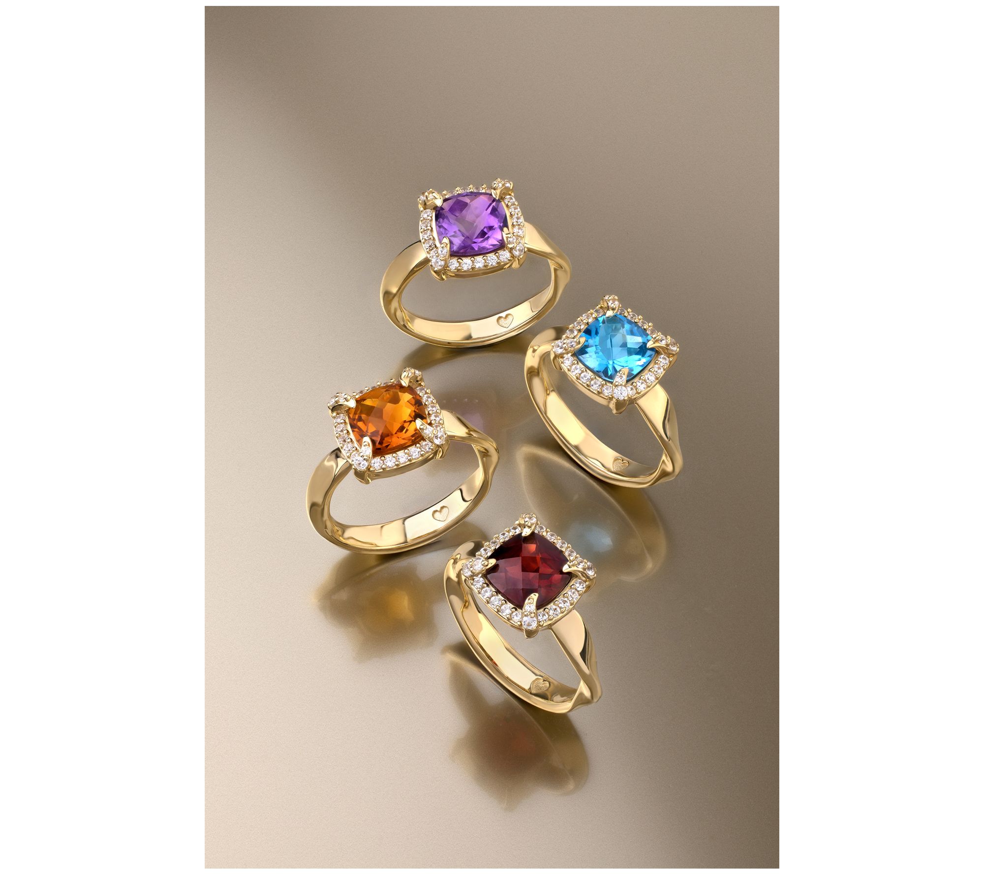 Total gemstone weights are approximate: Swiss blue topaz 2.491 carats; Madeira citrine 2.248 carats; African amethyst 2.22 carats; Garnet 2.605 carats