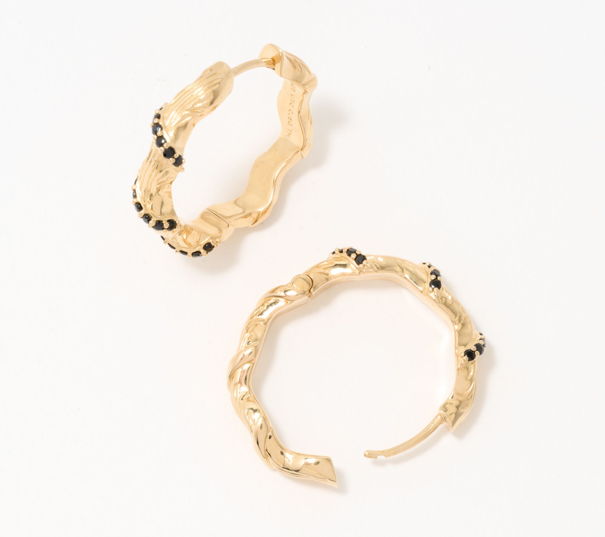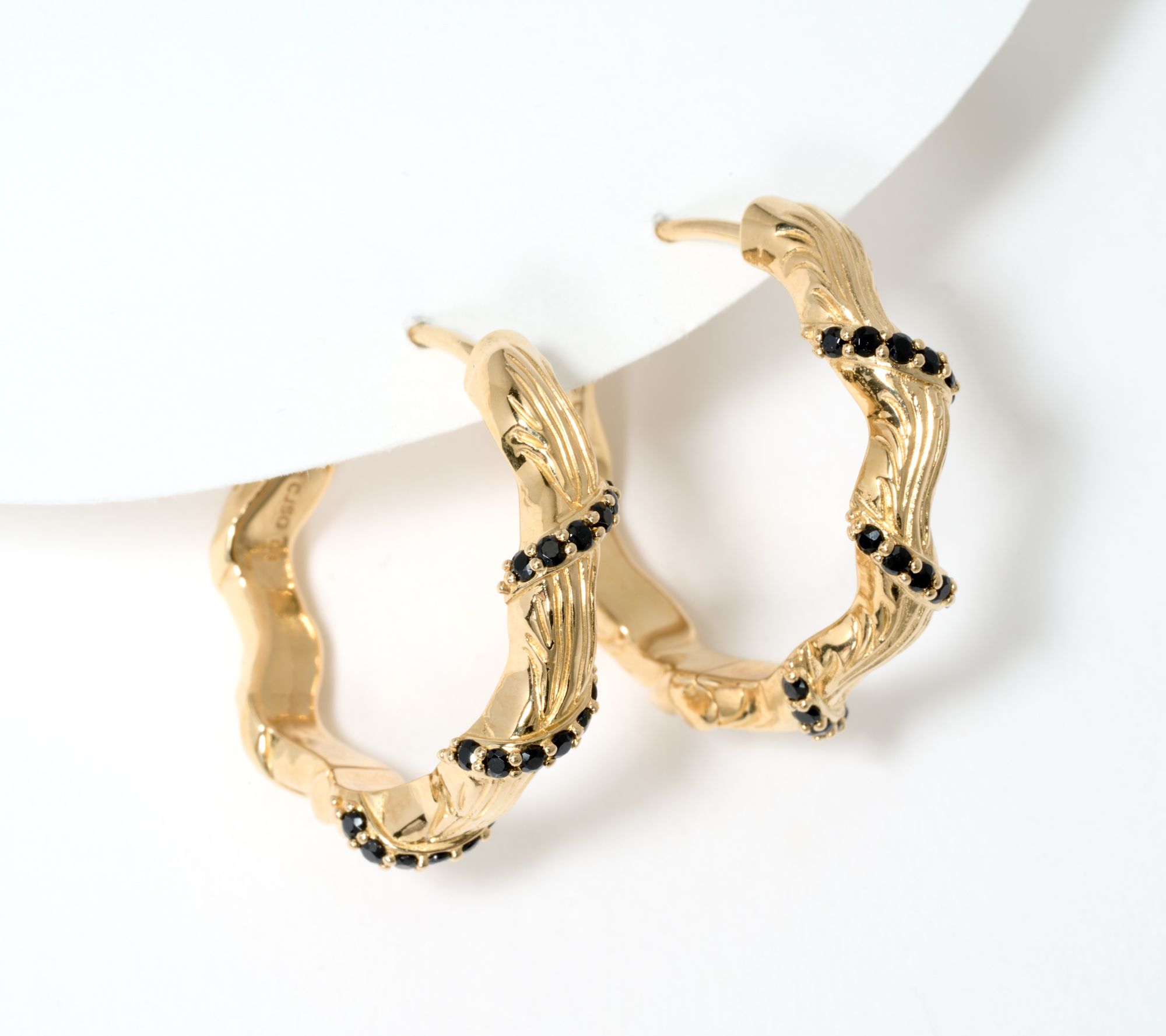 Wrapped with prong-set, round gemstones, these textured hoop earrings add a touch of sophistication to any outfit. From Christian James by Scott Grimes.