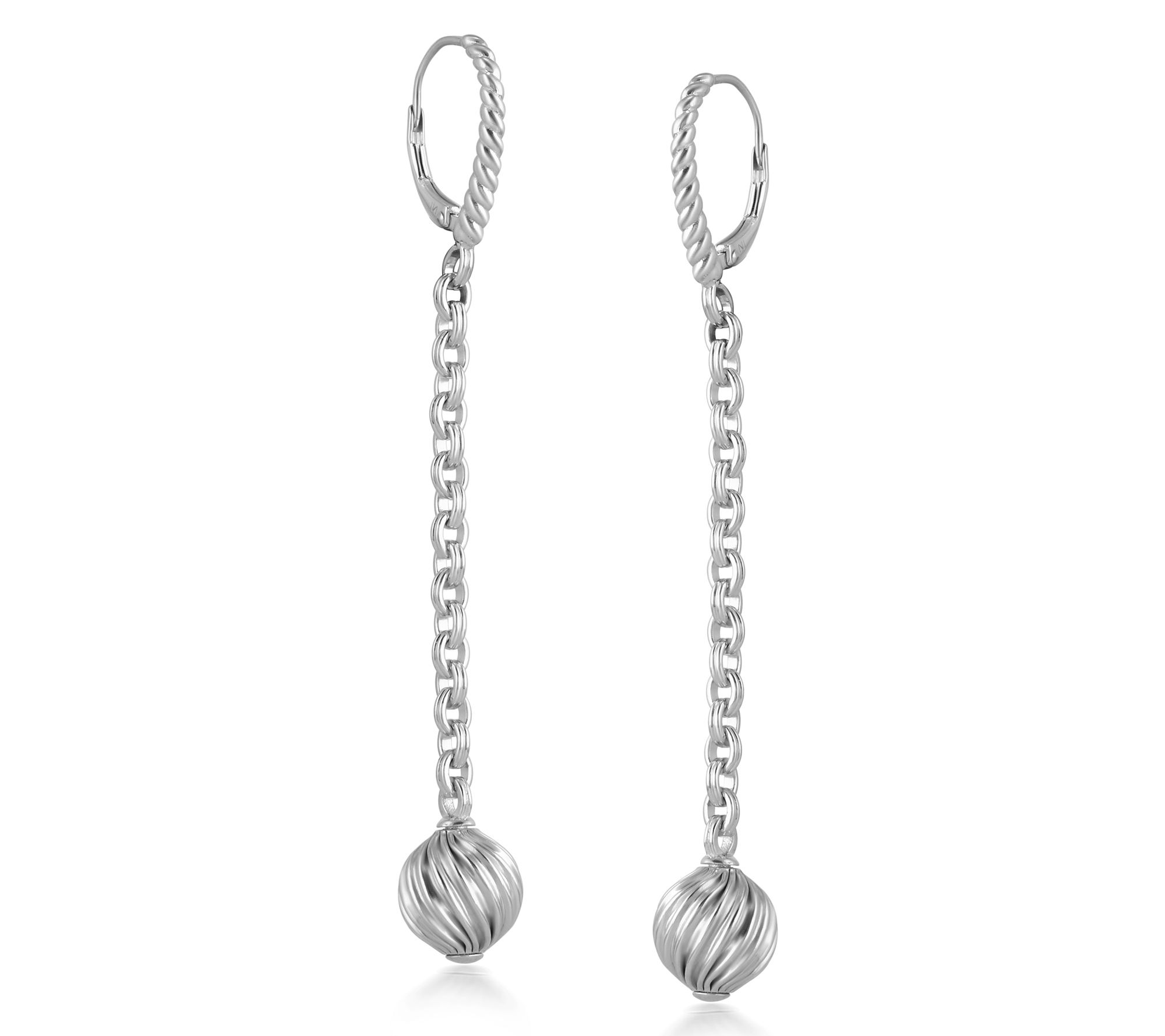 • Dangling rolo link chain design; ribbed, round bead drop; polished finish
