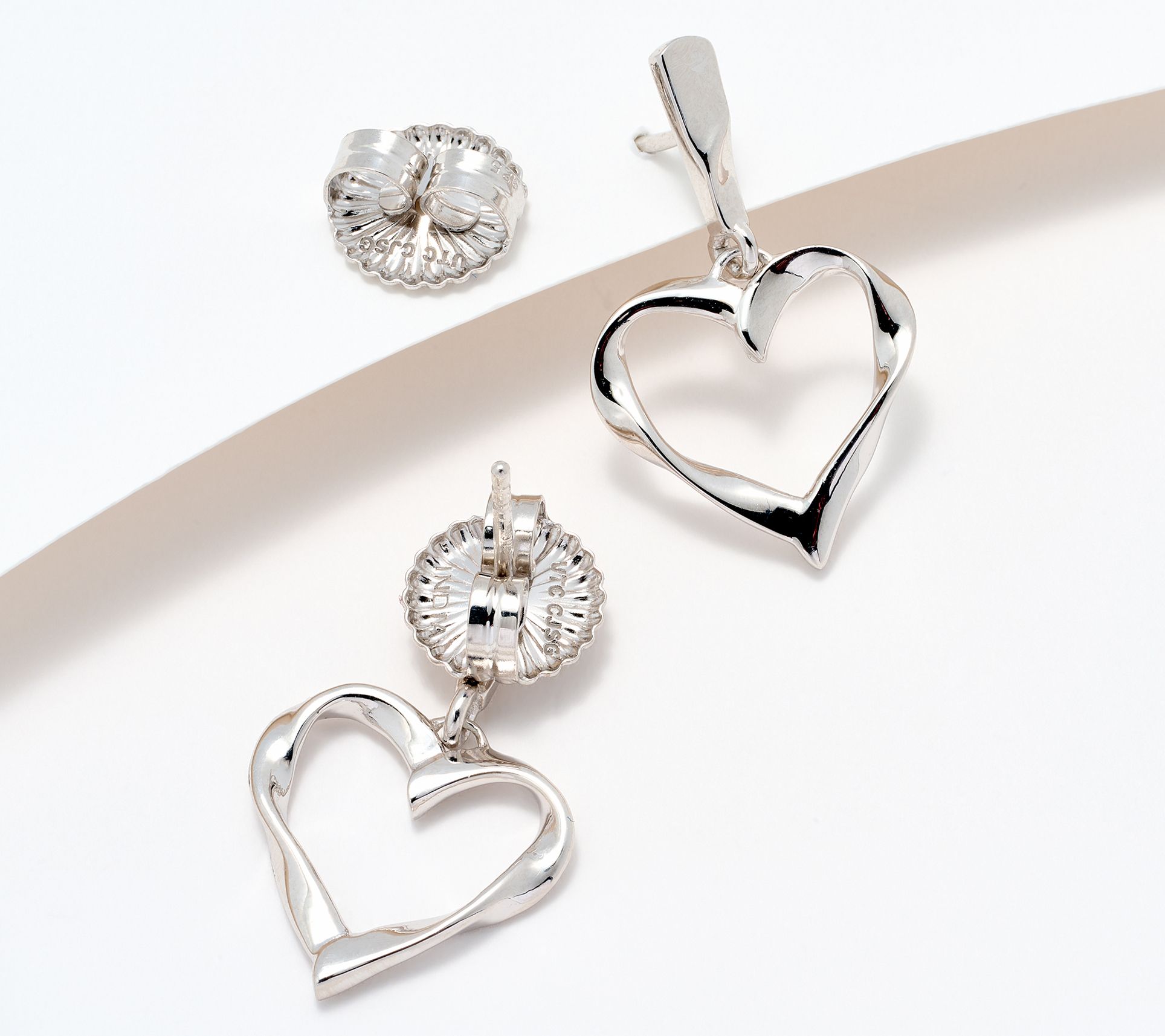 Feeling those Valentine's Day vibes? We sure are! Express your love of all things romantic -- on any given day -- wearing these sterling silver heart earrings. Crafted with an elongated post and a dangling open-heart design, these rippled earrings are sure to be love at first sight. From Christian James by Scott Grimes.