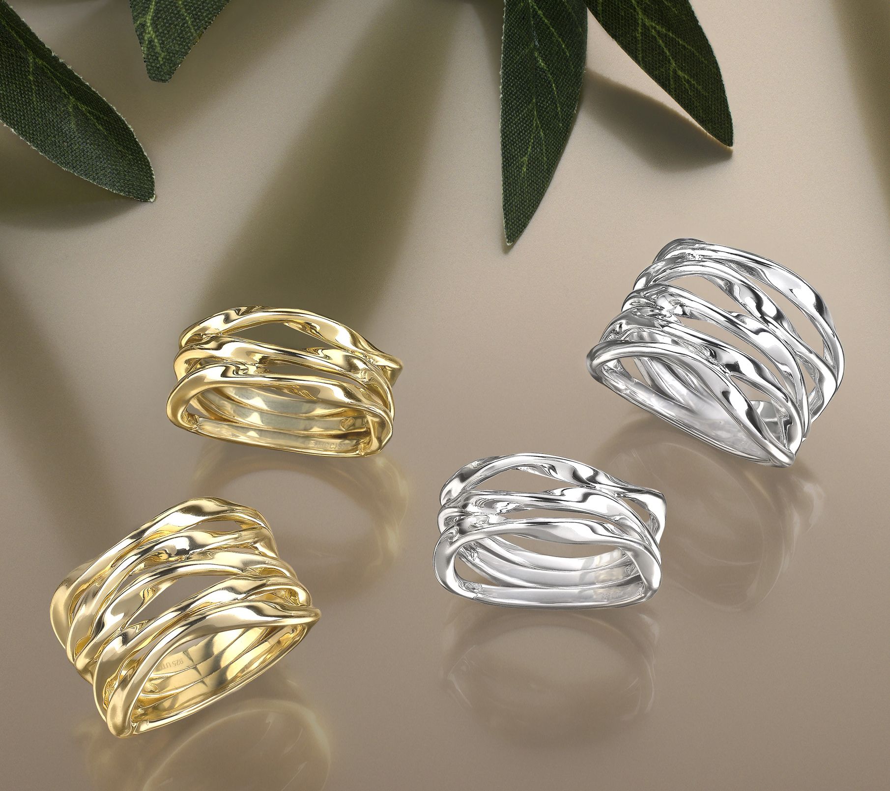 A small act can have a big impact. This three-row ripple design ring is a beautiful way to accessorize every day with intention, celebrating the lives that have touched you -- or those you've touched. Give it to a dear friend, sister, or niece, and discover how the ring's fluid curves and polished surfaces reflect the light, whether they're moving or standing still. From Christian James by Scott Grimes.