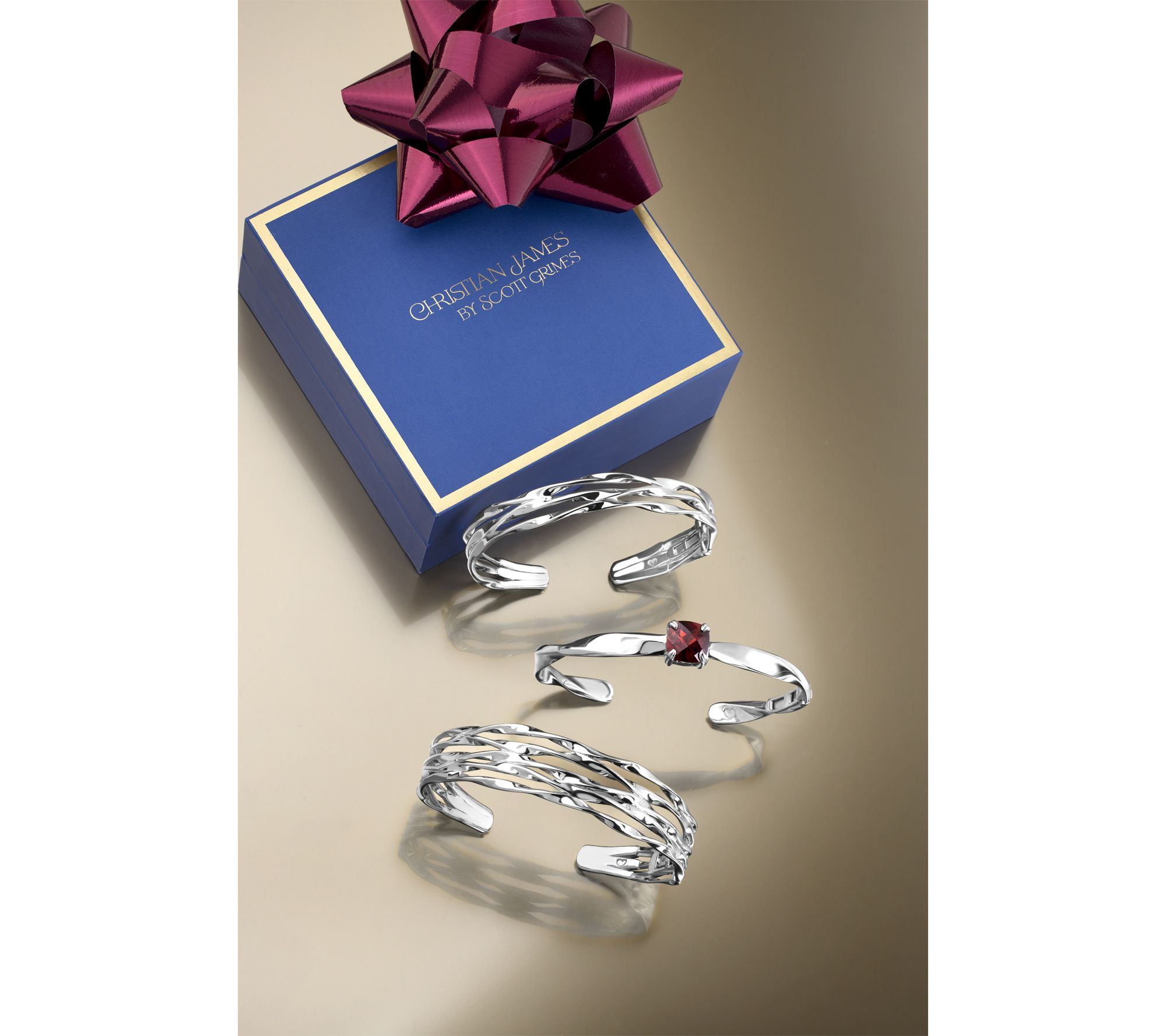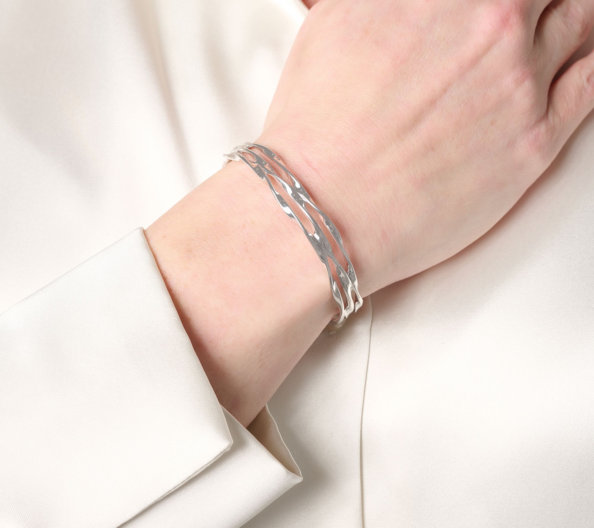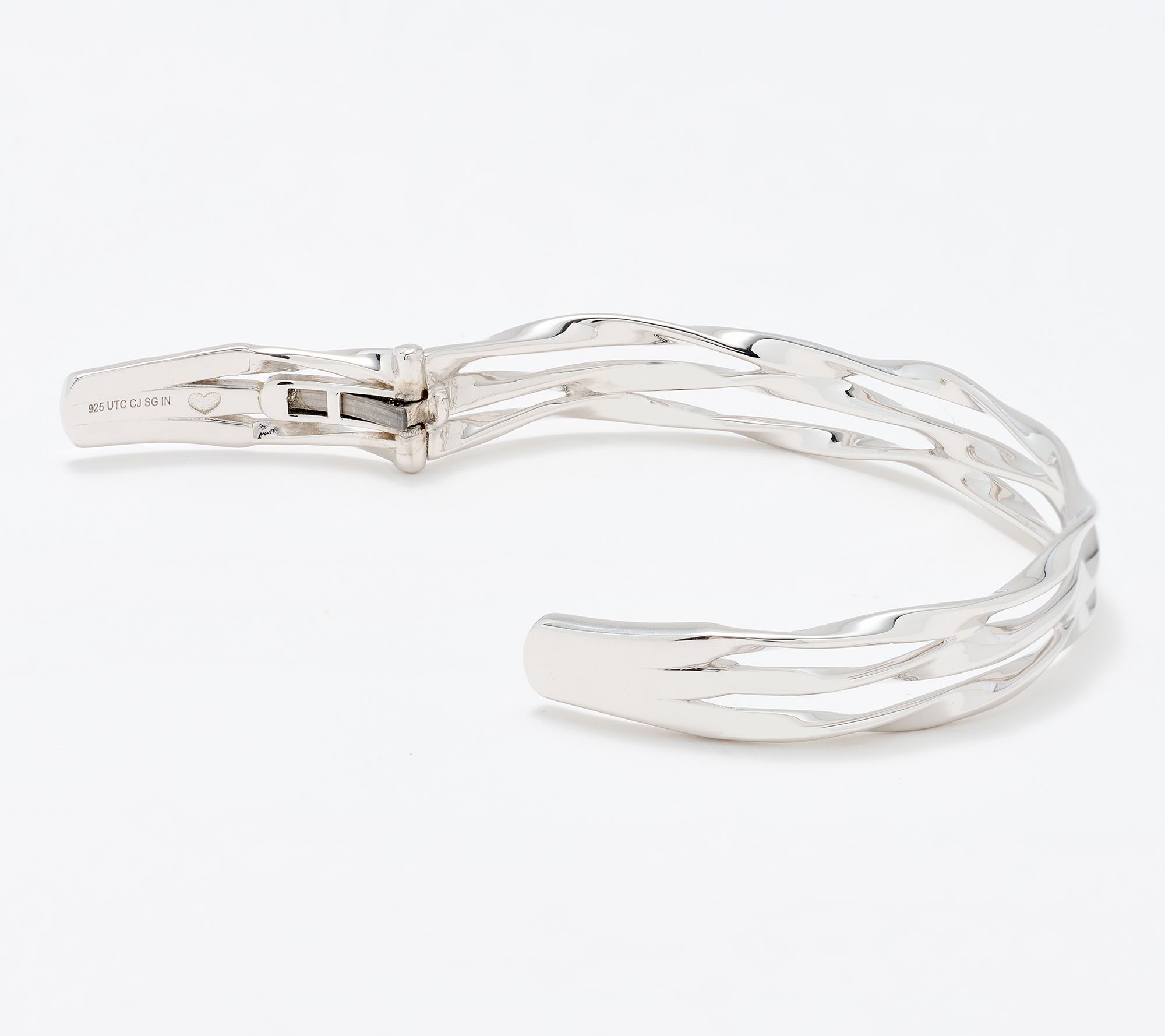Inspired by gentle waves, this glossy cuff bracelet adds texture and polish to both daytime and evening looks, thanks to its three-row ripple design. The hinged cuff glides onto your wrist for effortless style, whether worn alone or stacked. From Christian James by Scott Grimes.