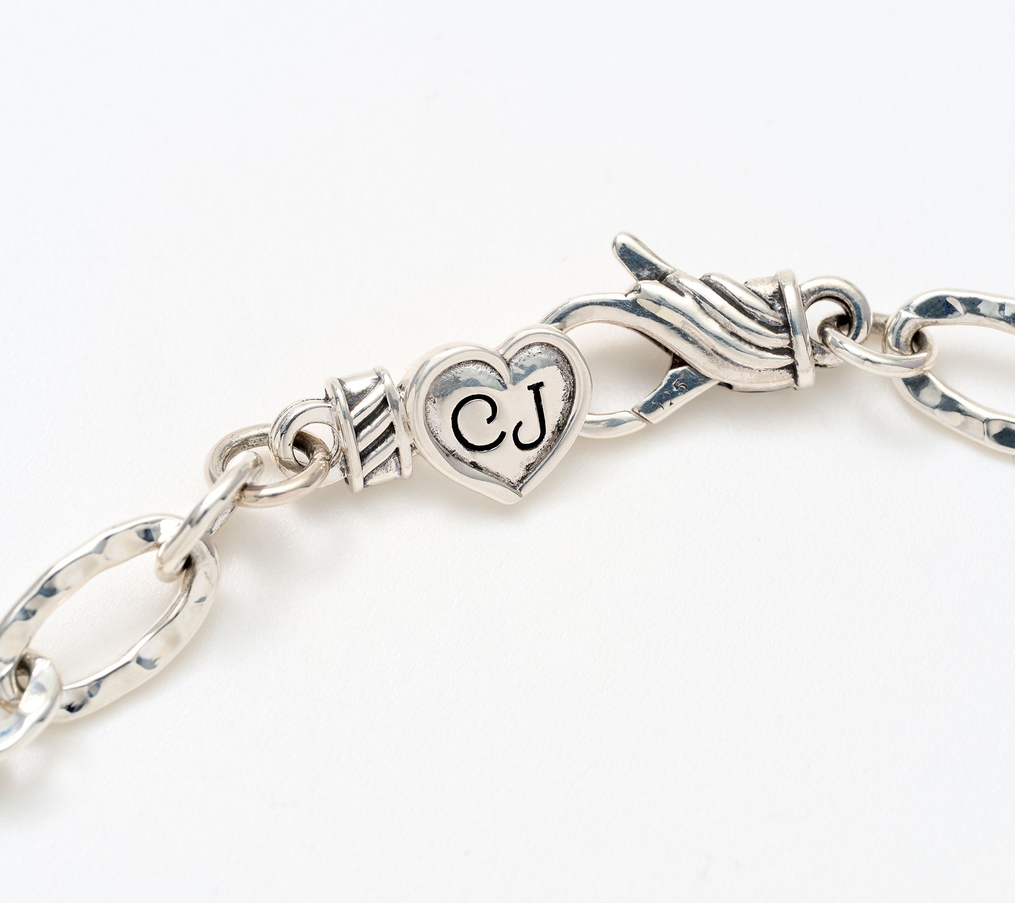 Create your own story with this sterling silver link bracelet, enhanced by hammered oval links and the signature Christian James heart detail atop the connector ring. The decorative lobster claw clasp adds a stylish finishing touch, making this bracelet easy to wear solo or stack for a layered look. From Christian James by Scott Grimes.