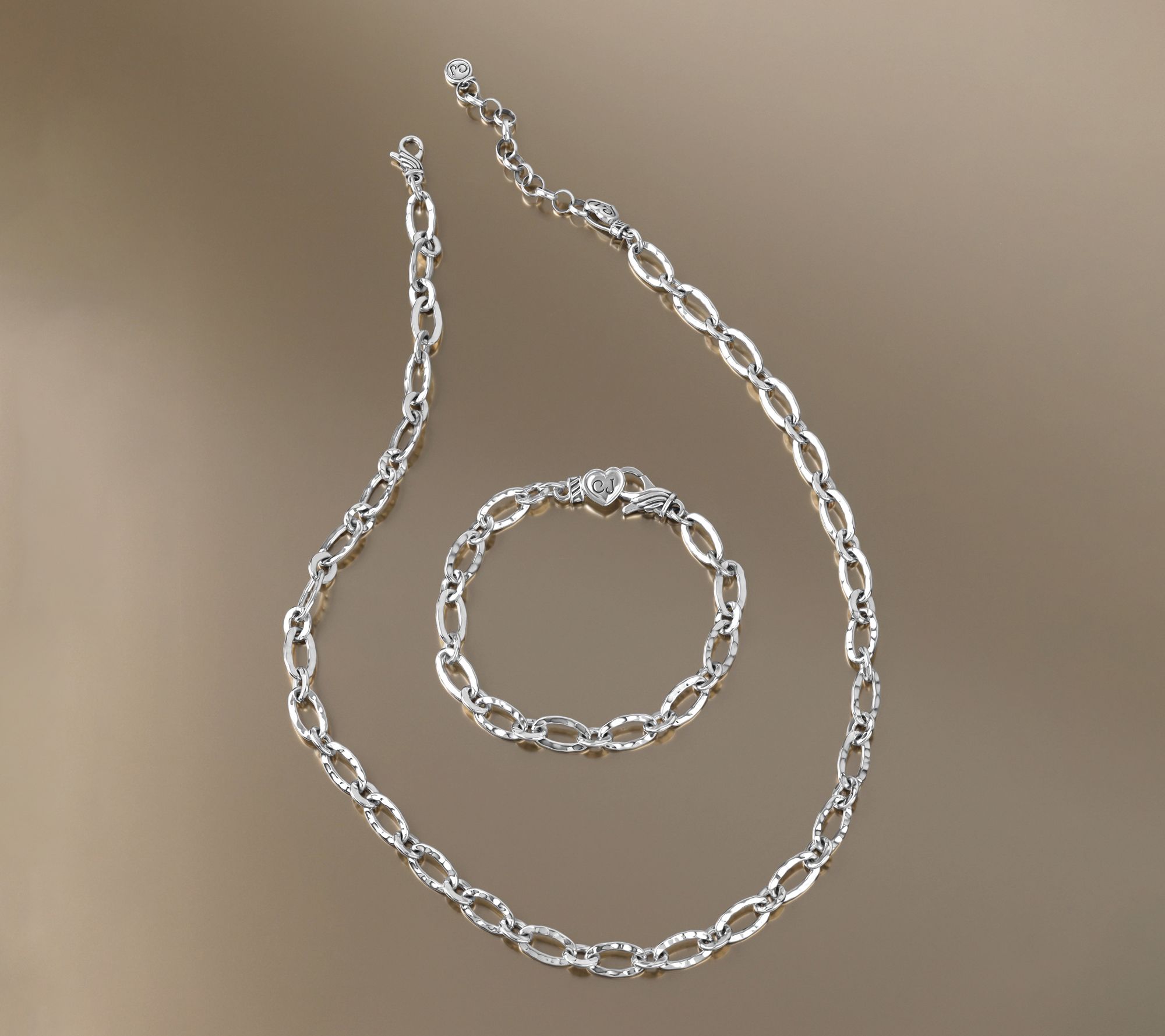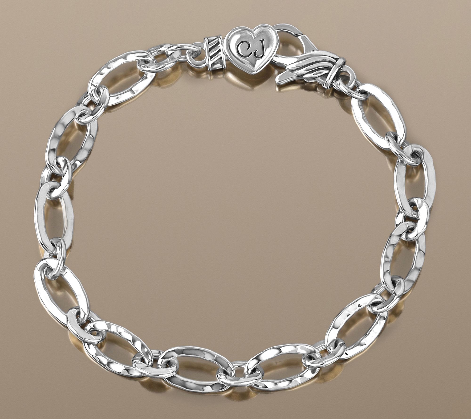 • Hammered, long oval links; connector ring with signature Christian James heart; hammered finish