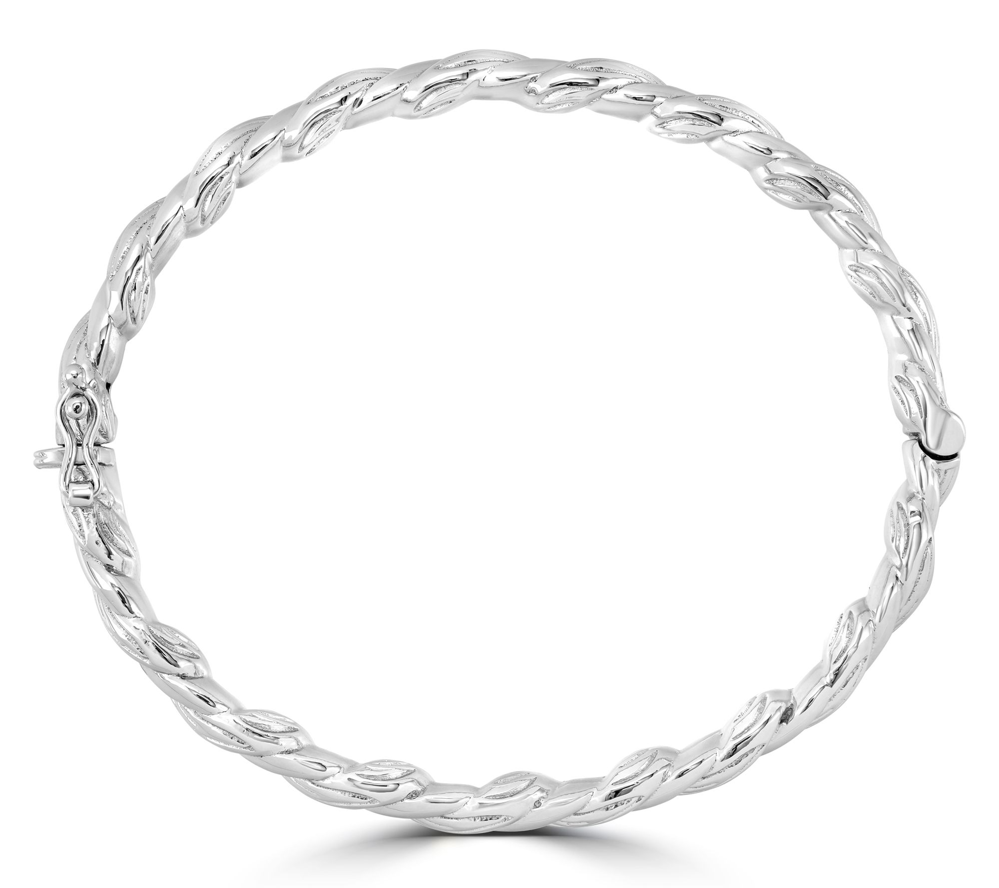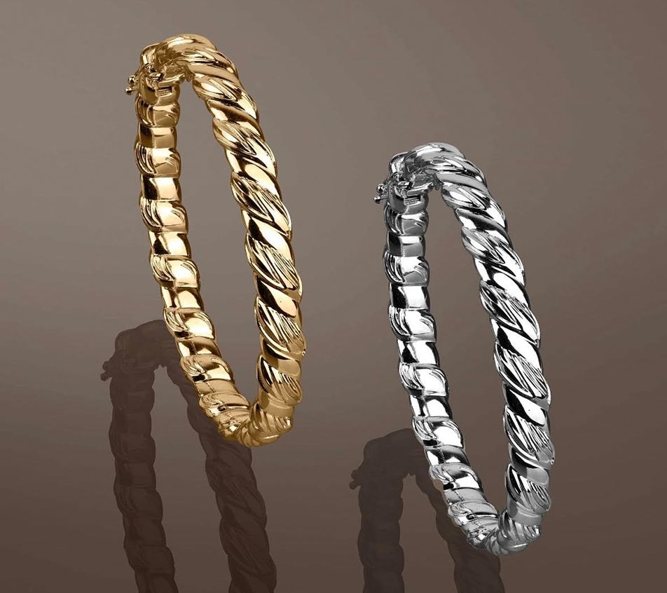 From casual outings to formal occasions, this rhodium-plated sterling silver bangle adds a sophisticated touch to any outfit. With alternating polished and textured sections, it's a stylish addition to your jewelry collection. From the Christian James by Scott Grimes Jewelry Collection.