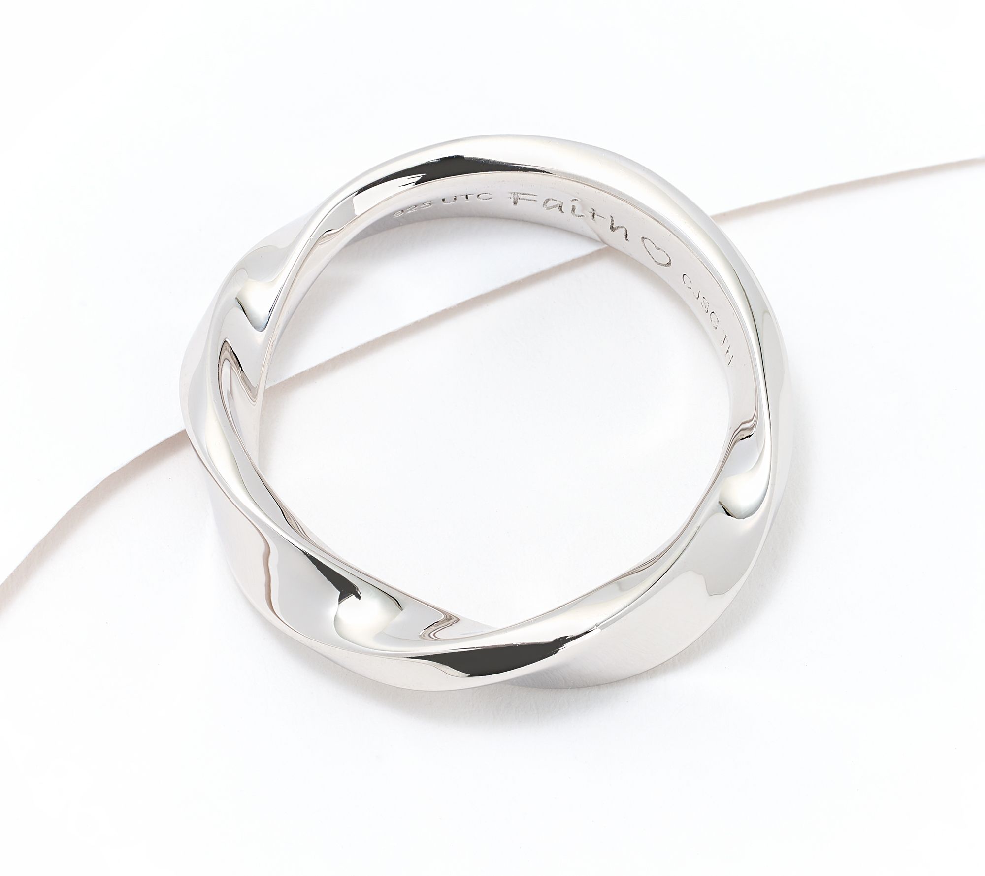 • Engraved message on shank interior; ripple band design; polished finish