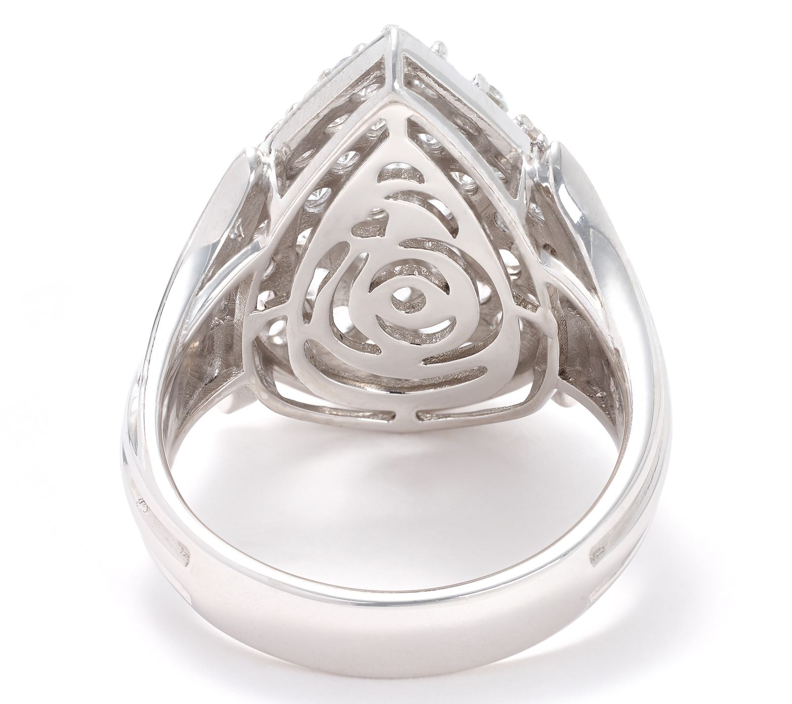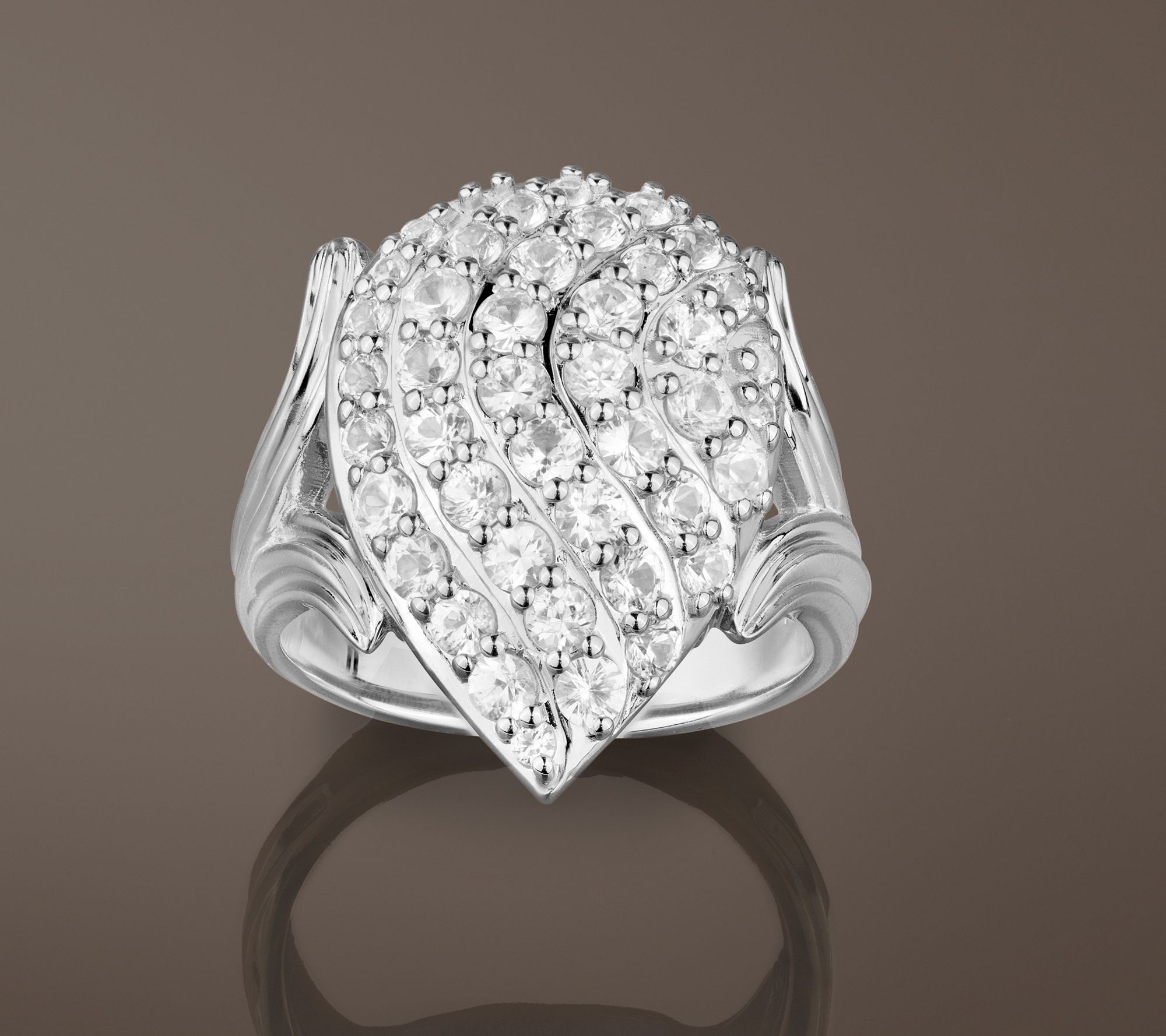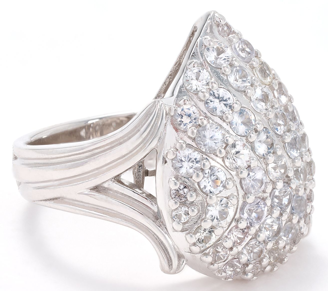 Make quite the splash when you flash this glamorous ripple ring. The eye-catching pear-shaped center design sparkles with prong-set, round white sapphire gemstones, while the ribbed, split shank completes the standout style. From Christian James by Scott Grimes.
