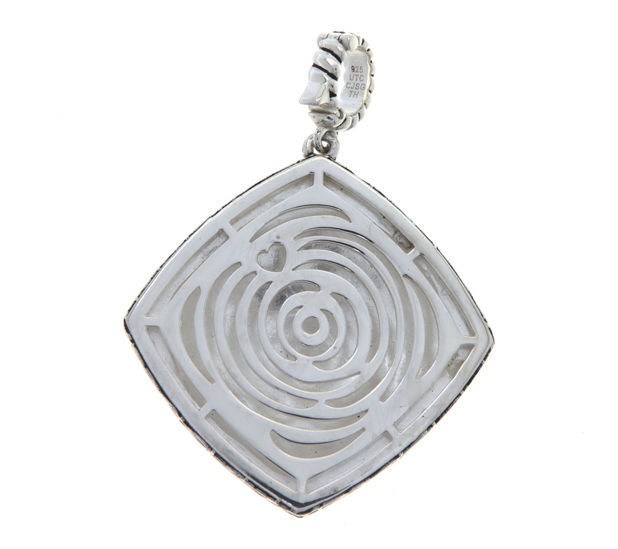 • 14K yellow gold-clad sterling silver ripple center; sterling silver border and enhancer bail; polished finish