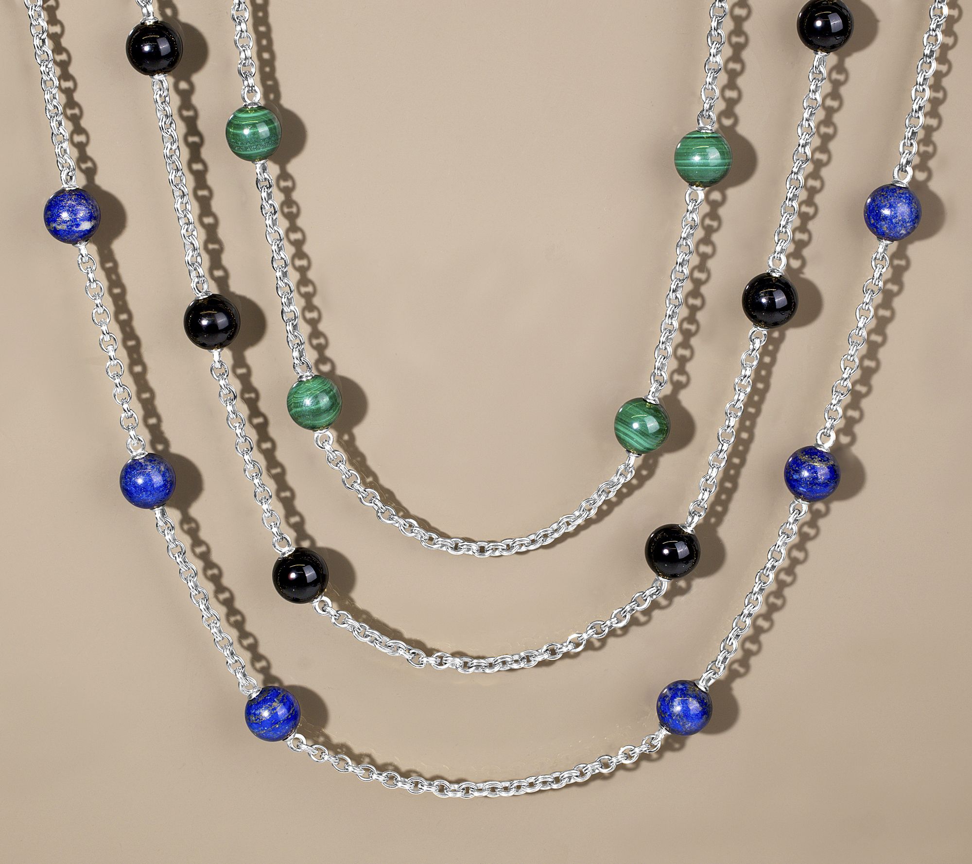 When your day craves a bold yet easy accent, reach for this gemstone bead necklace to complete the look. Gemstone beads pop against the oxidized sterling silver, while the double rolo chain adds just the right edge. Wear it solo for a statement or layered with other favorites -- an extender lets you personalize the fit. From Christian James by Scott Grimes.
