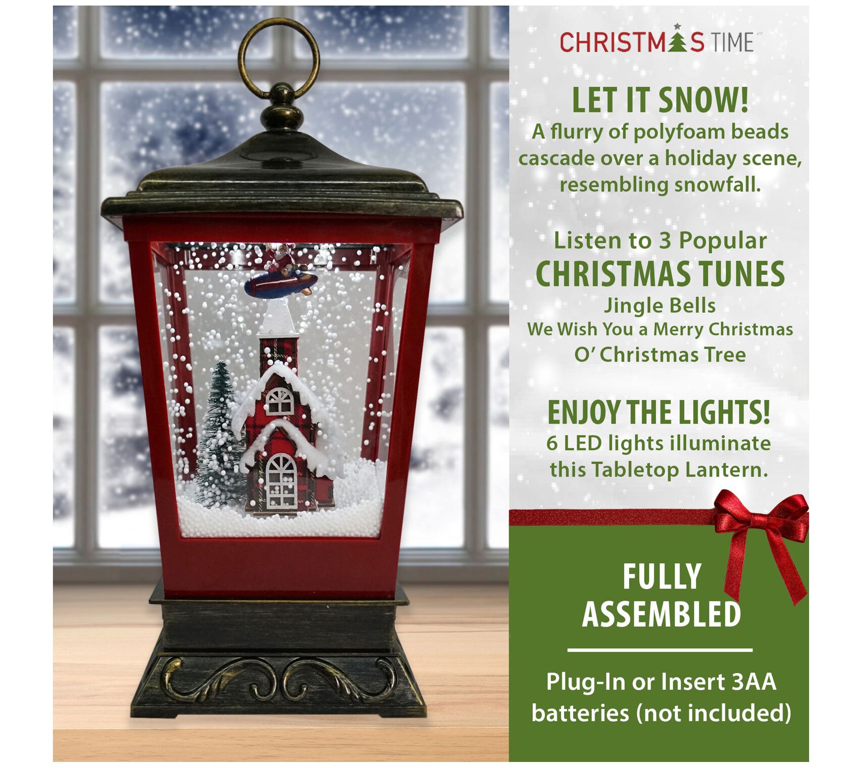 Christmas Time 15.5 in Snowing Tabletop Lantern