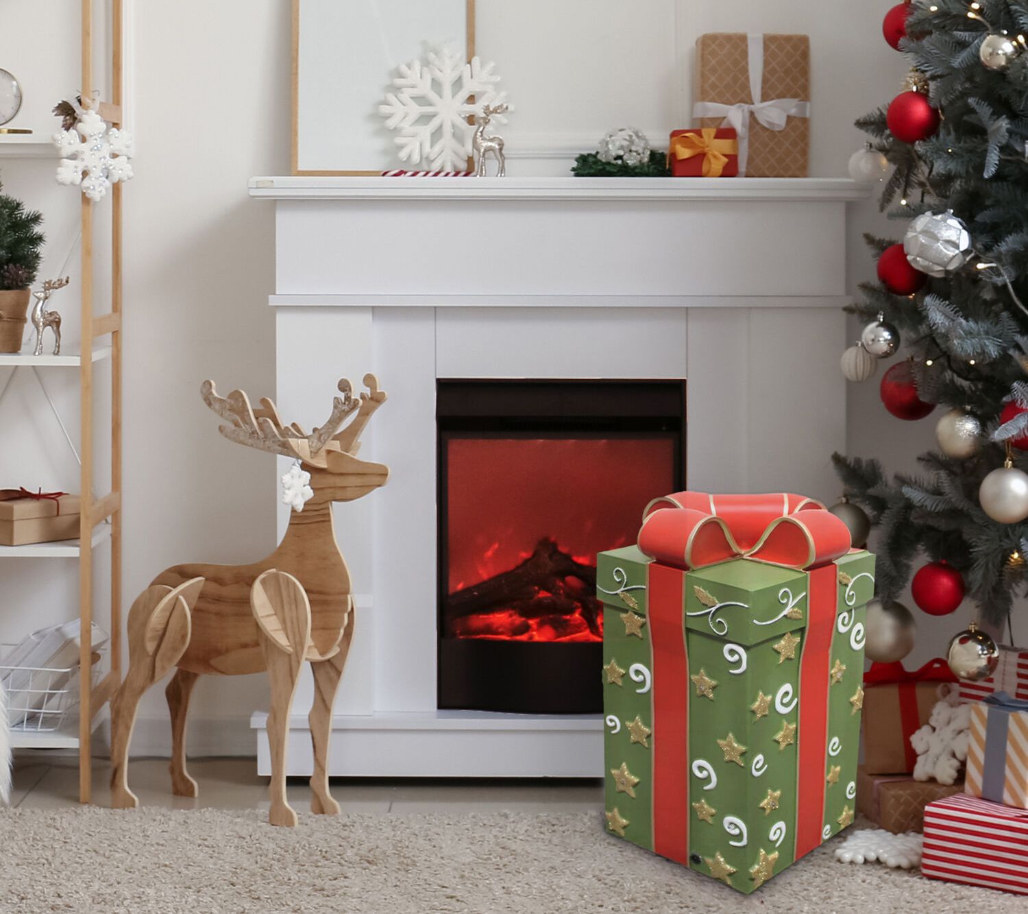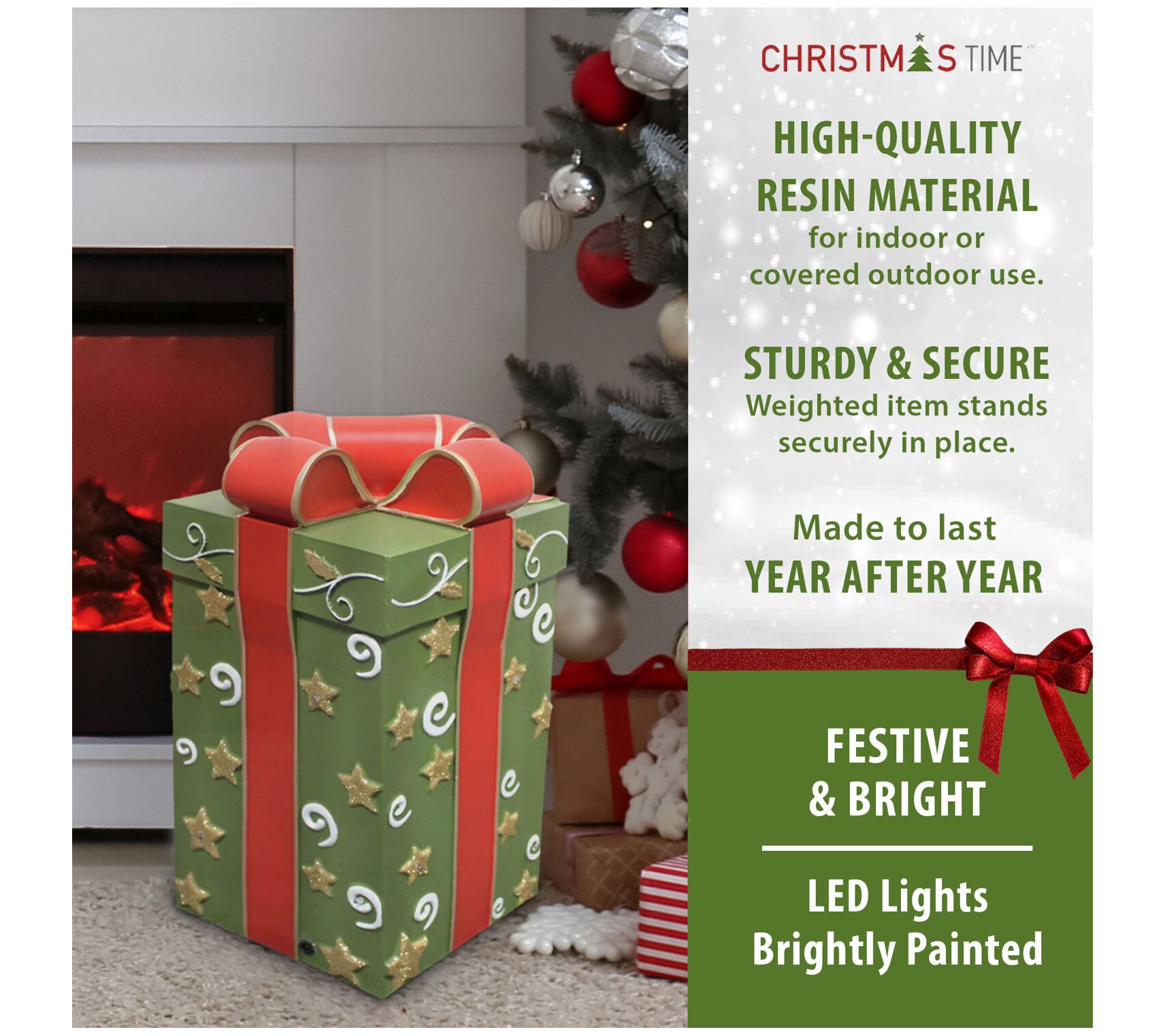 • Includes gift box decoration with multicolored LED lights