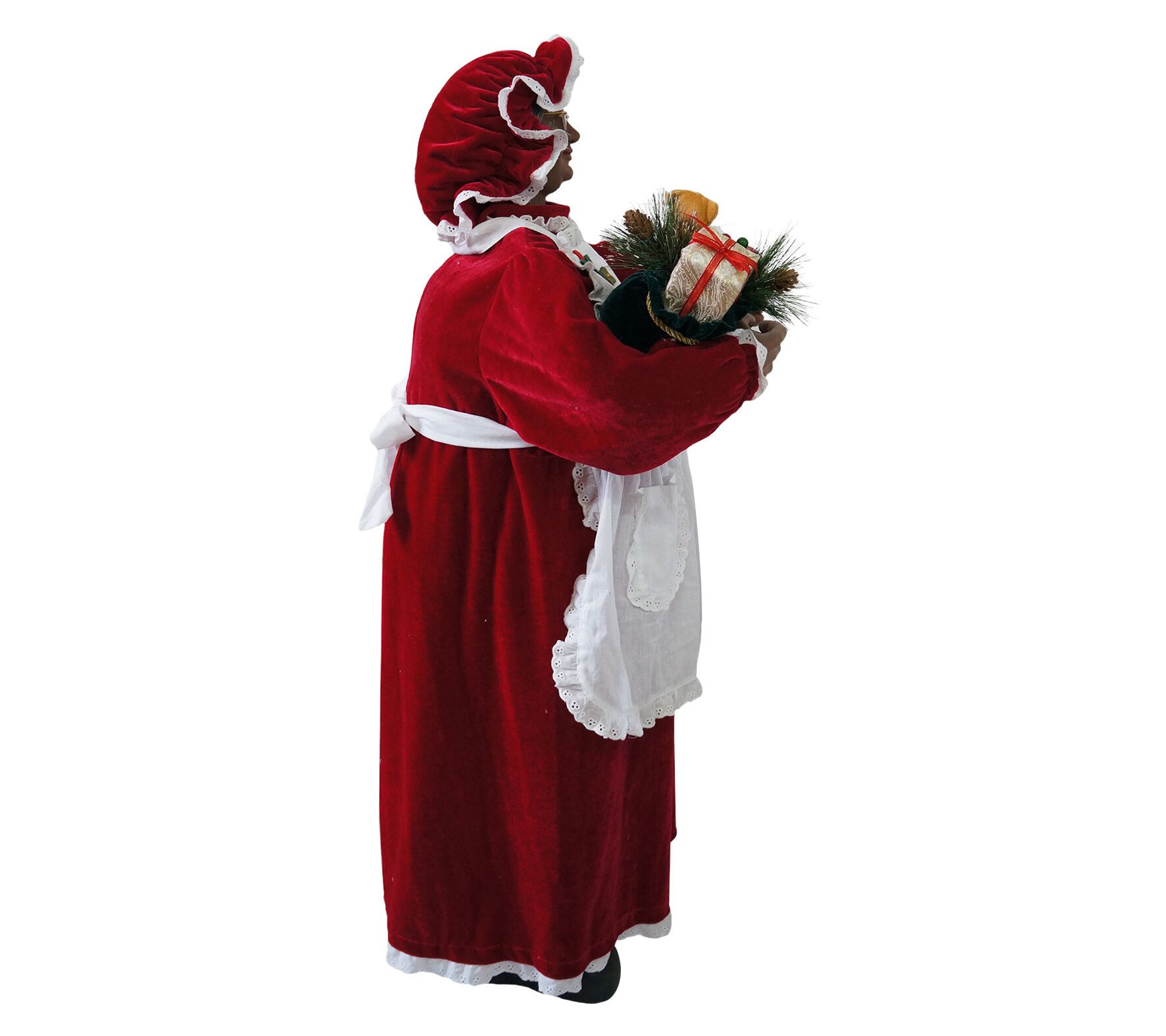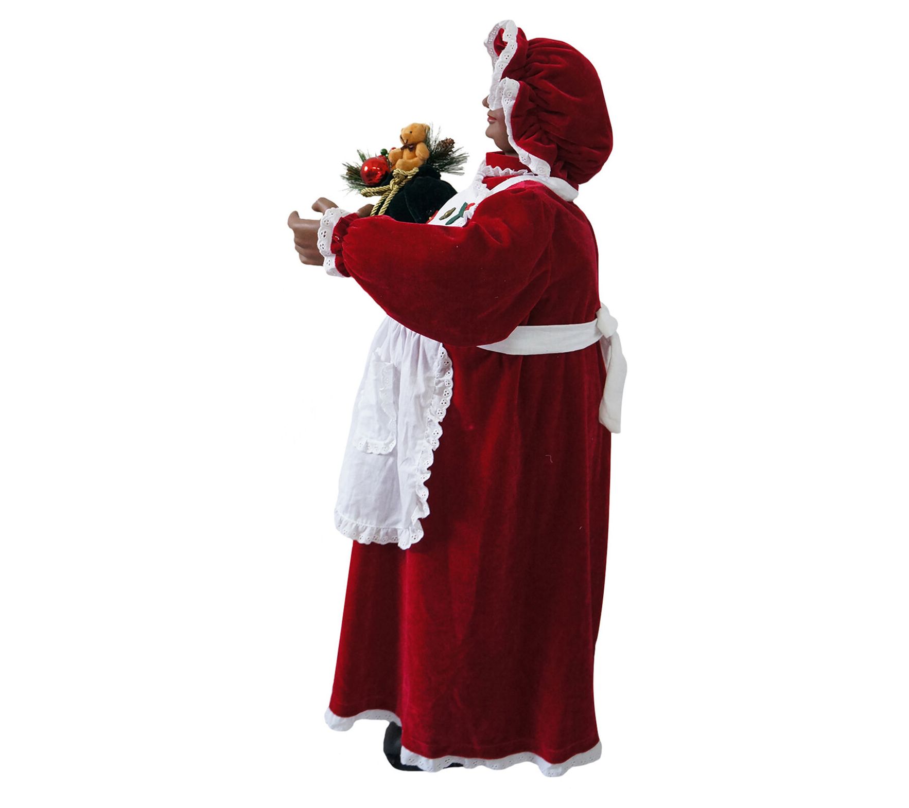 Ever wondered who helps Santa prepare for the holidays? Mrs. Claus from Christmas Time is here to bring festive charm to your home, office, or shop. Draped in a red velvet dress complemented by a white apron and mob cap, her joyful smile enhances any holiday setting. When plugged in, she magically moves her head and arms, captivating all with or without music. Whether greeting guests at your door or tucked by the tree, she's sure to warm hearts with her presence. From Christmas Time.