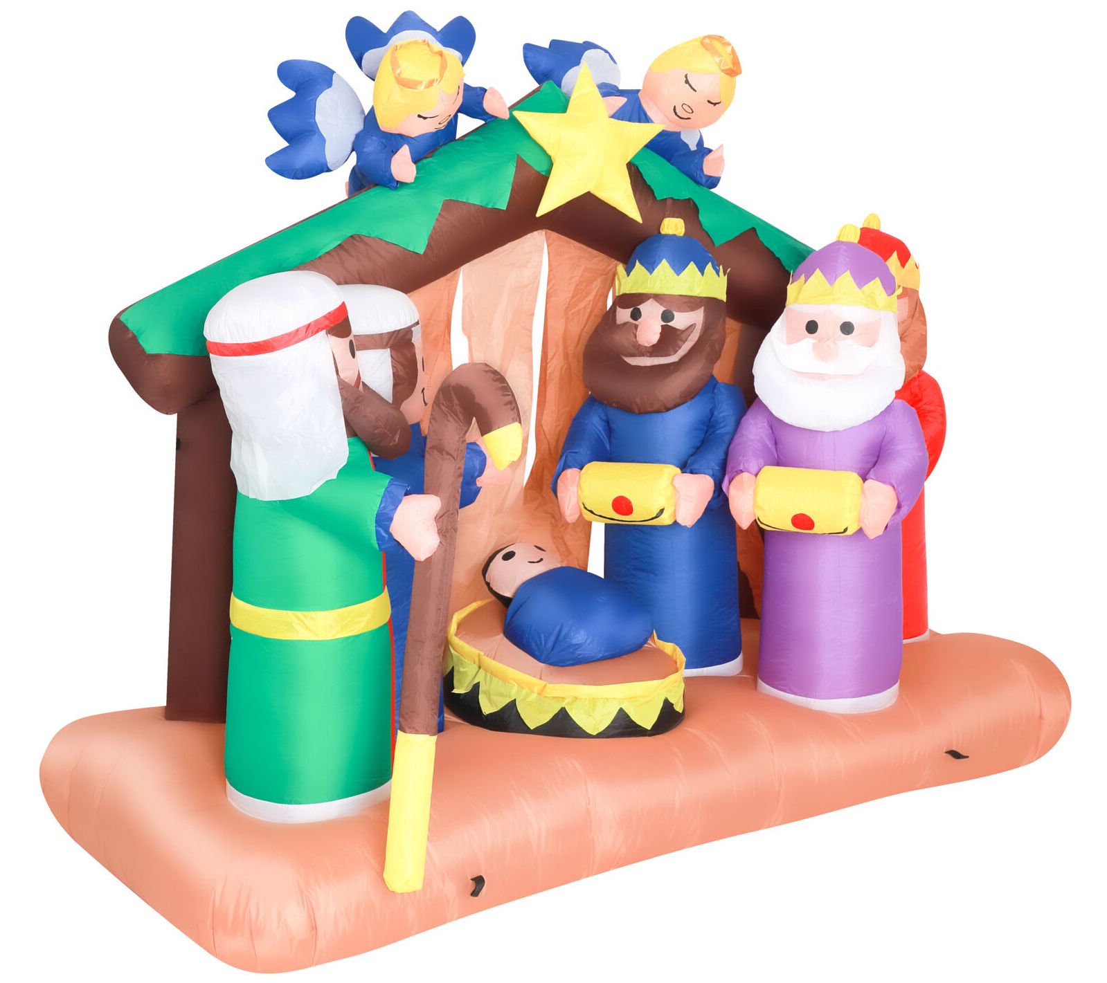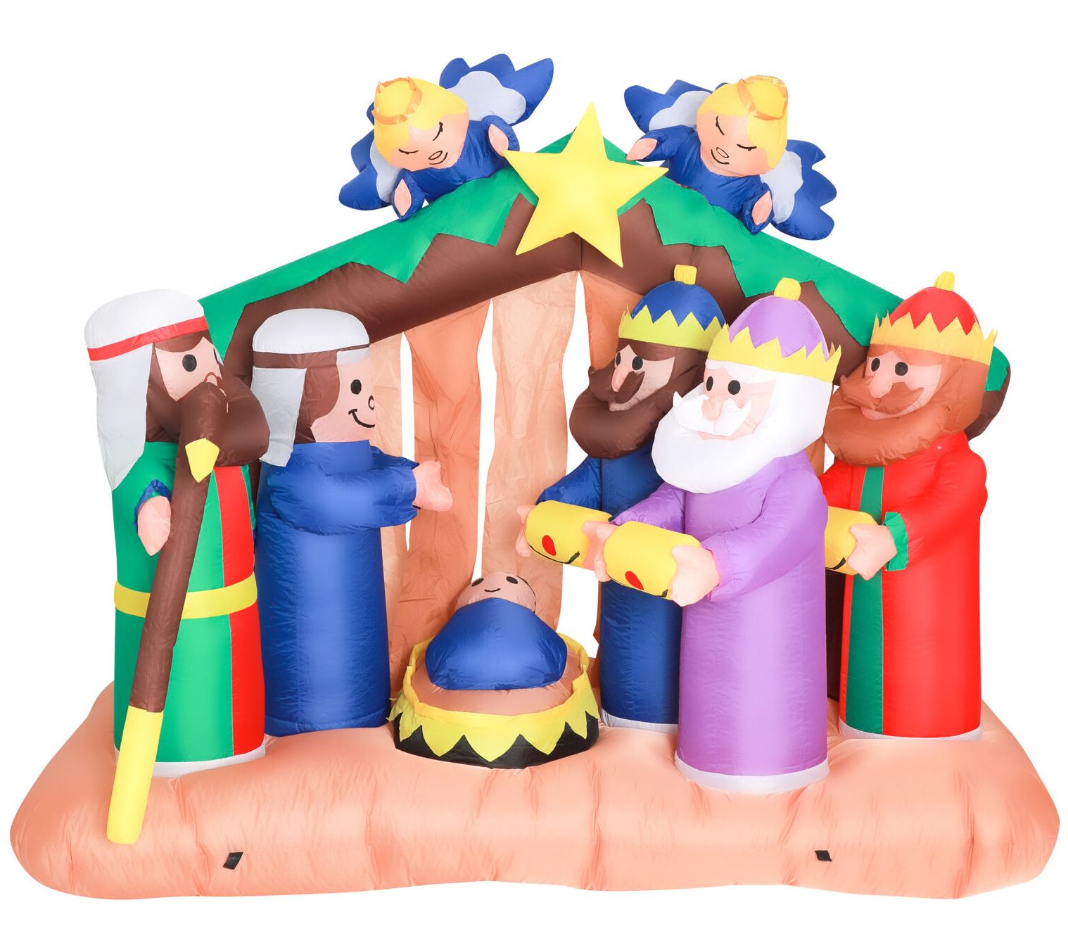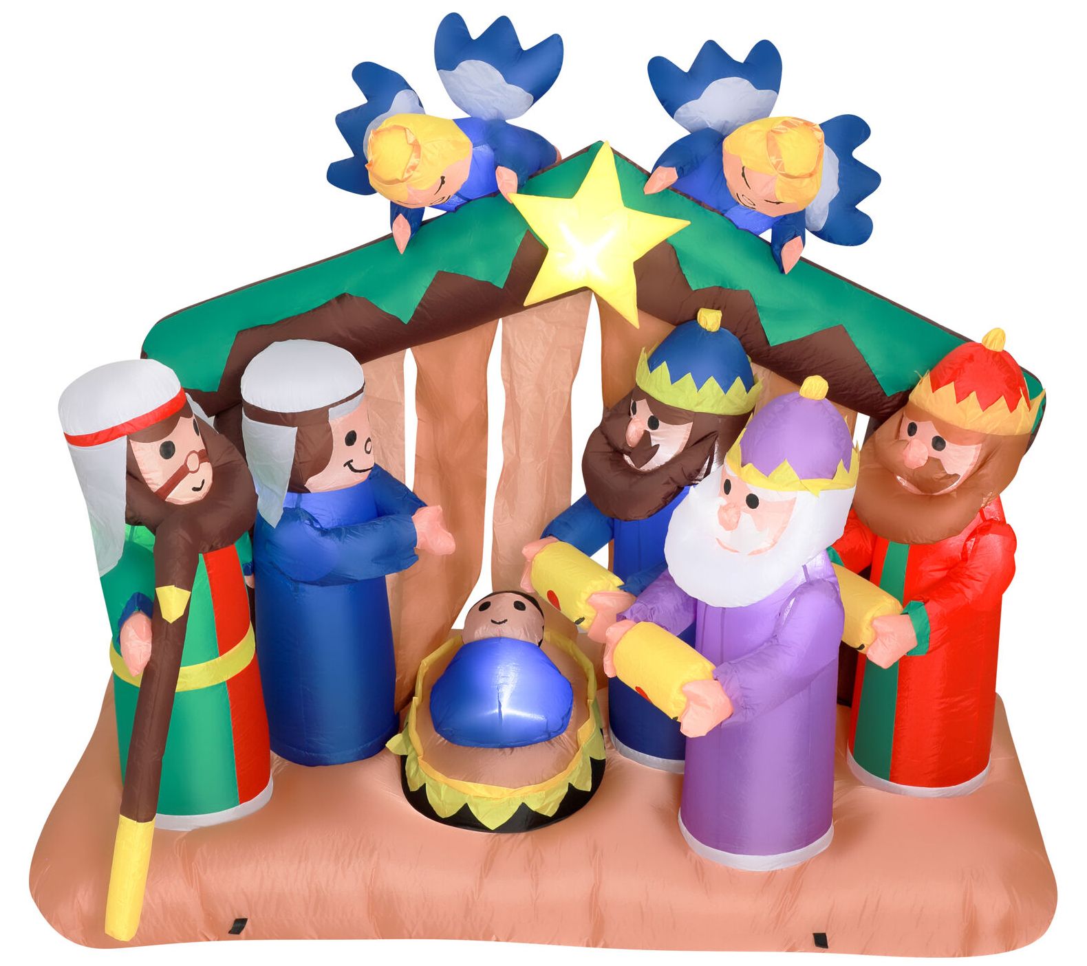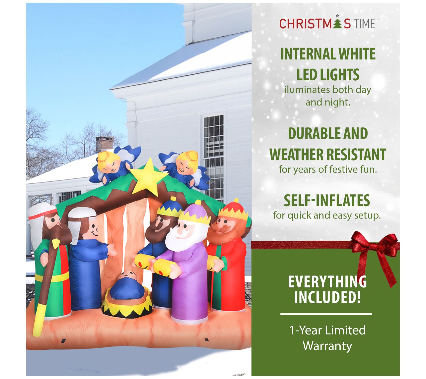 Delight and inspire your friends, family, and neighbors with this beautiful nativity scene inflatable. It self-inflates in seconds to bring a joyful celebration to your lawn. From Christmas Time.