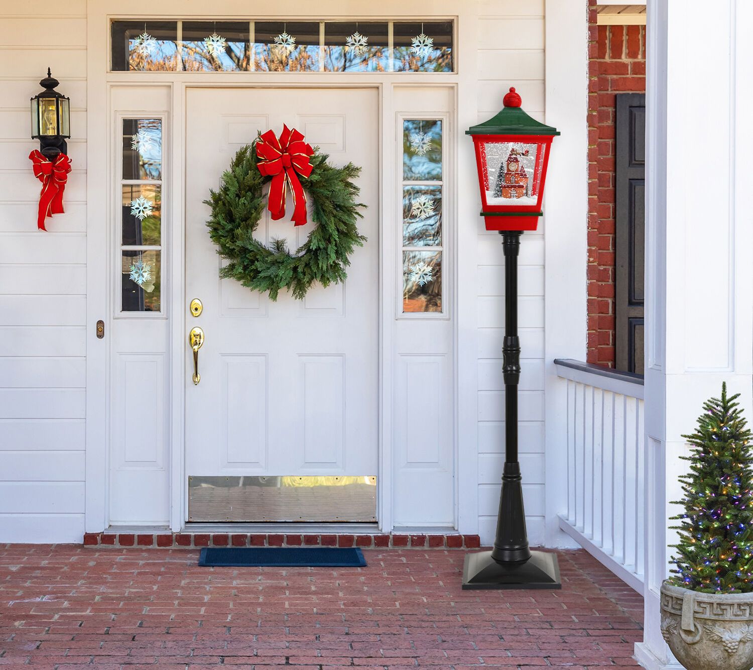 Inspired by the charm of a small-town Christmas, this street lamp decor is a delightful addition to your home or porch. It features cascading snow and three Christmas tunes to brighten up your holiday season. From Christmas Time.