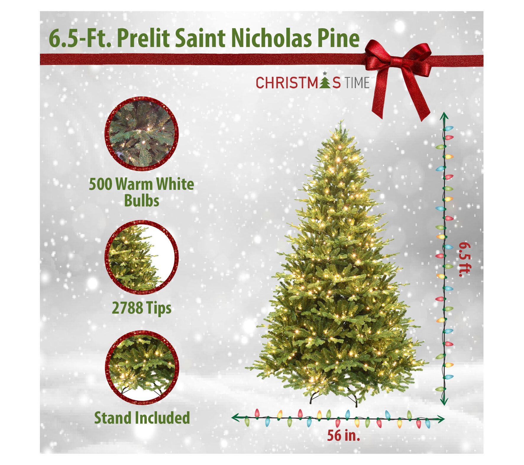 Christmas Time 6.5-Ft. Saint Nicholas Pine Christmas Tree with