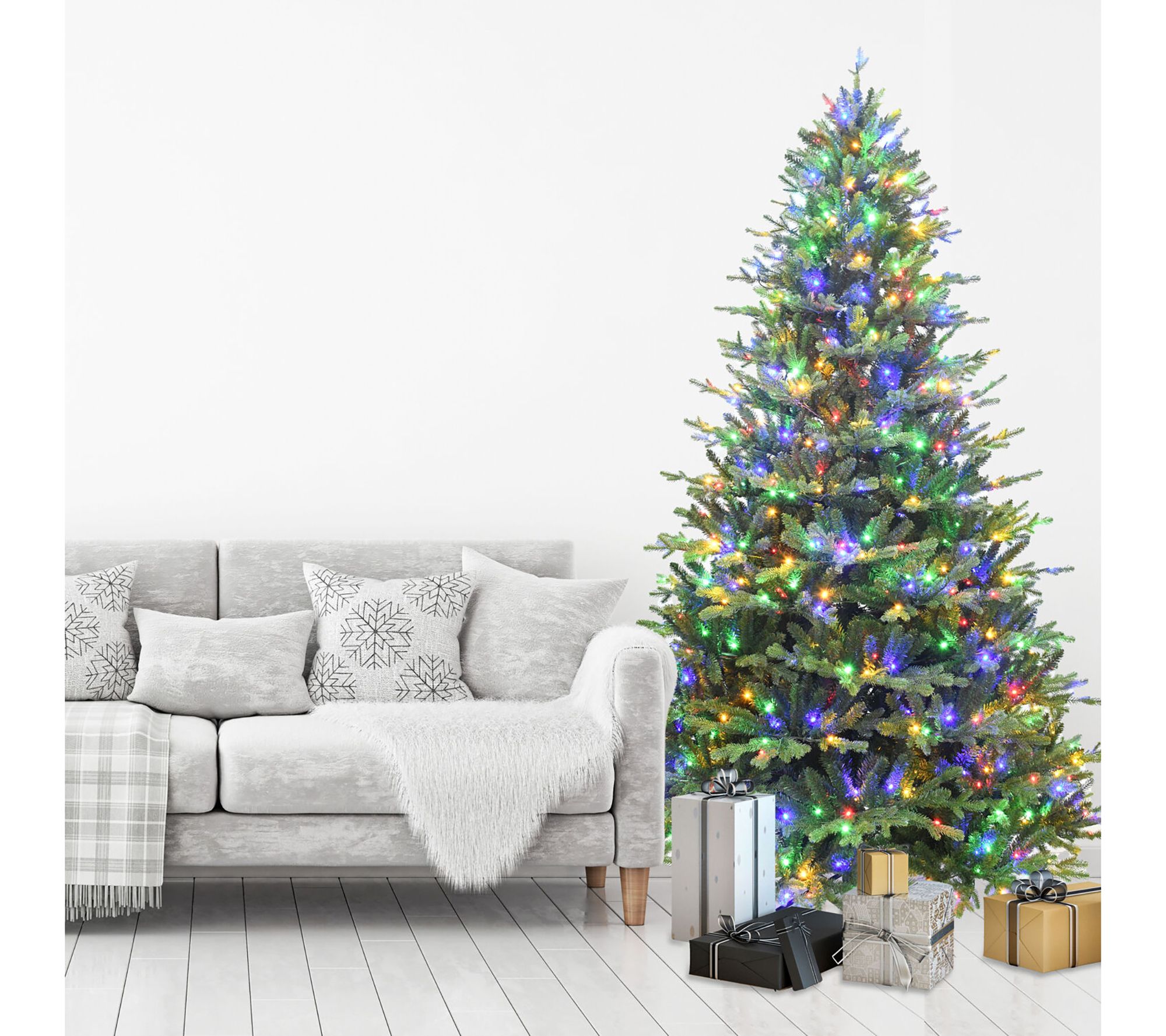 Set the scene for a festive holiday season with the Christmas Time Saint Nicholas Pine Christmas Tree. This full, traditional silhouette boasts lifelike foliage and multicolor LED lights that bring a warm, cheerful glow to your home. From Christmas Time.