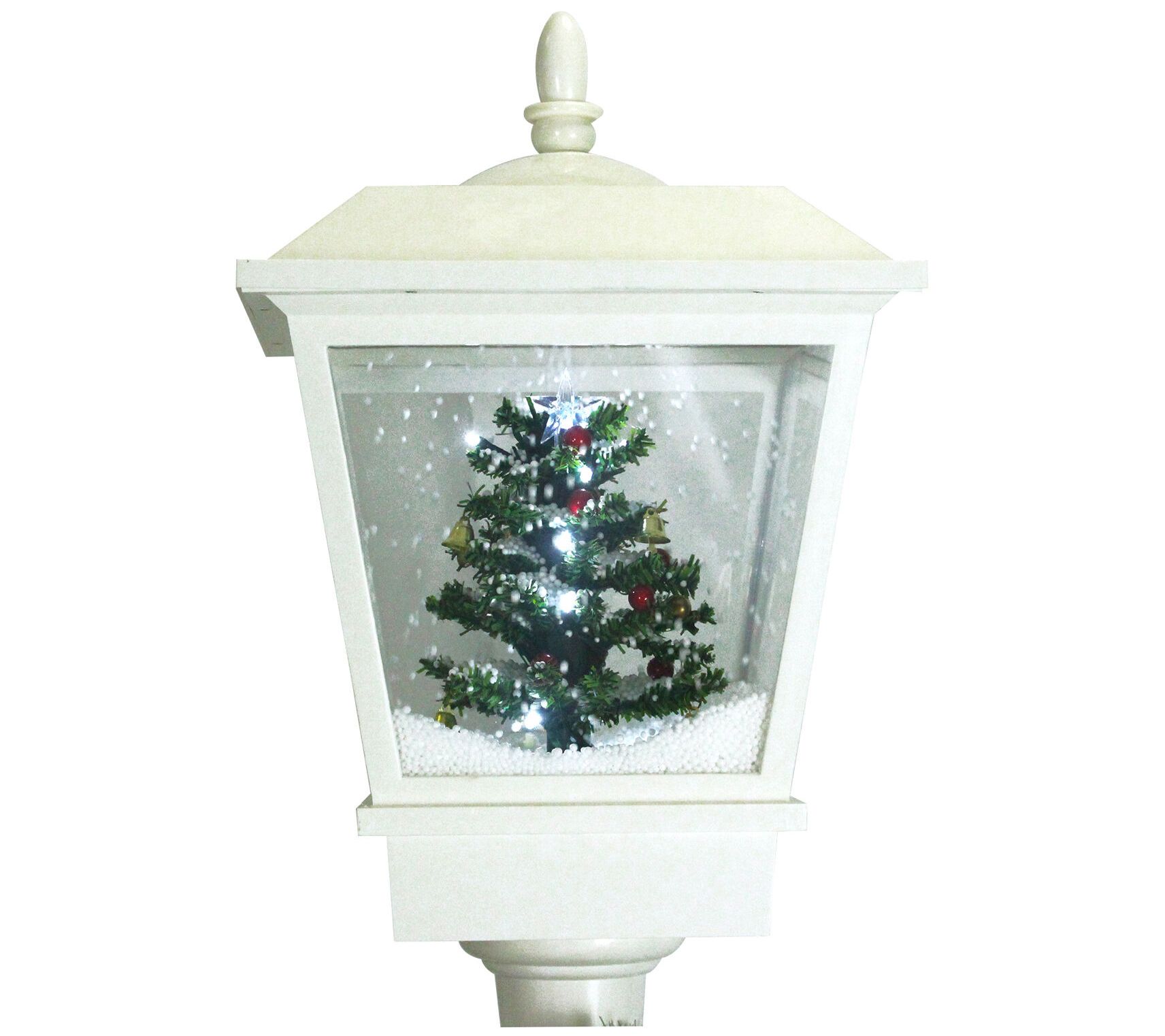 Inspired by the charm of a small-town Christmas, this street lamp decor is a delightful addition to your home or porch. It features cascading snow and 25 Christmas tunes to brighten up your holiday season. From Christmas Time.