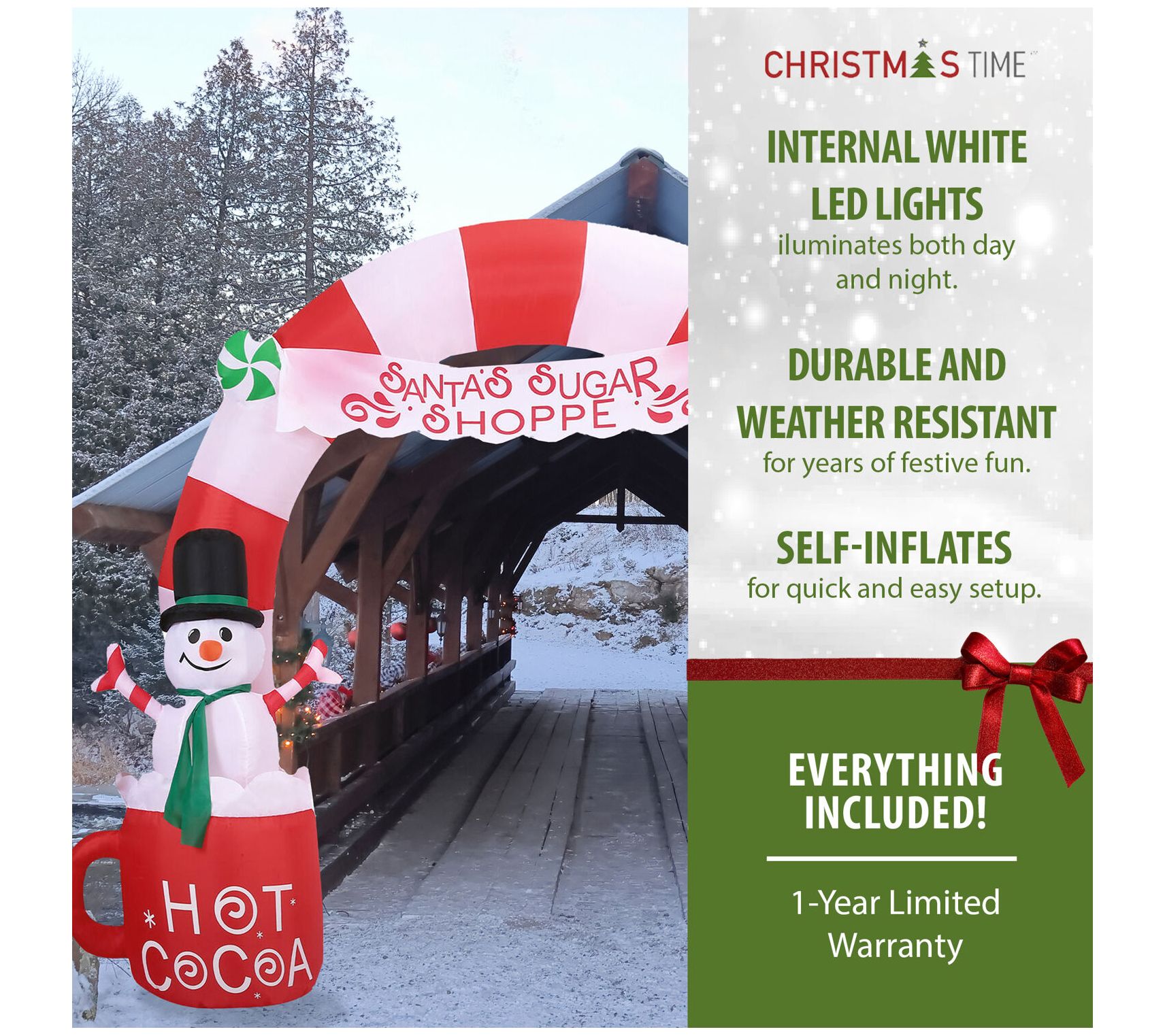 Experience the magic of the North Pole -- right in your own front yard! This charming inflatable self-inflates in seconds and makes a whimsical addition to your outside decor. From Christmas Time.