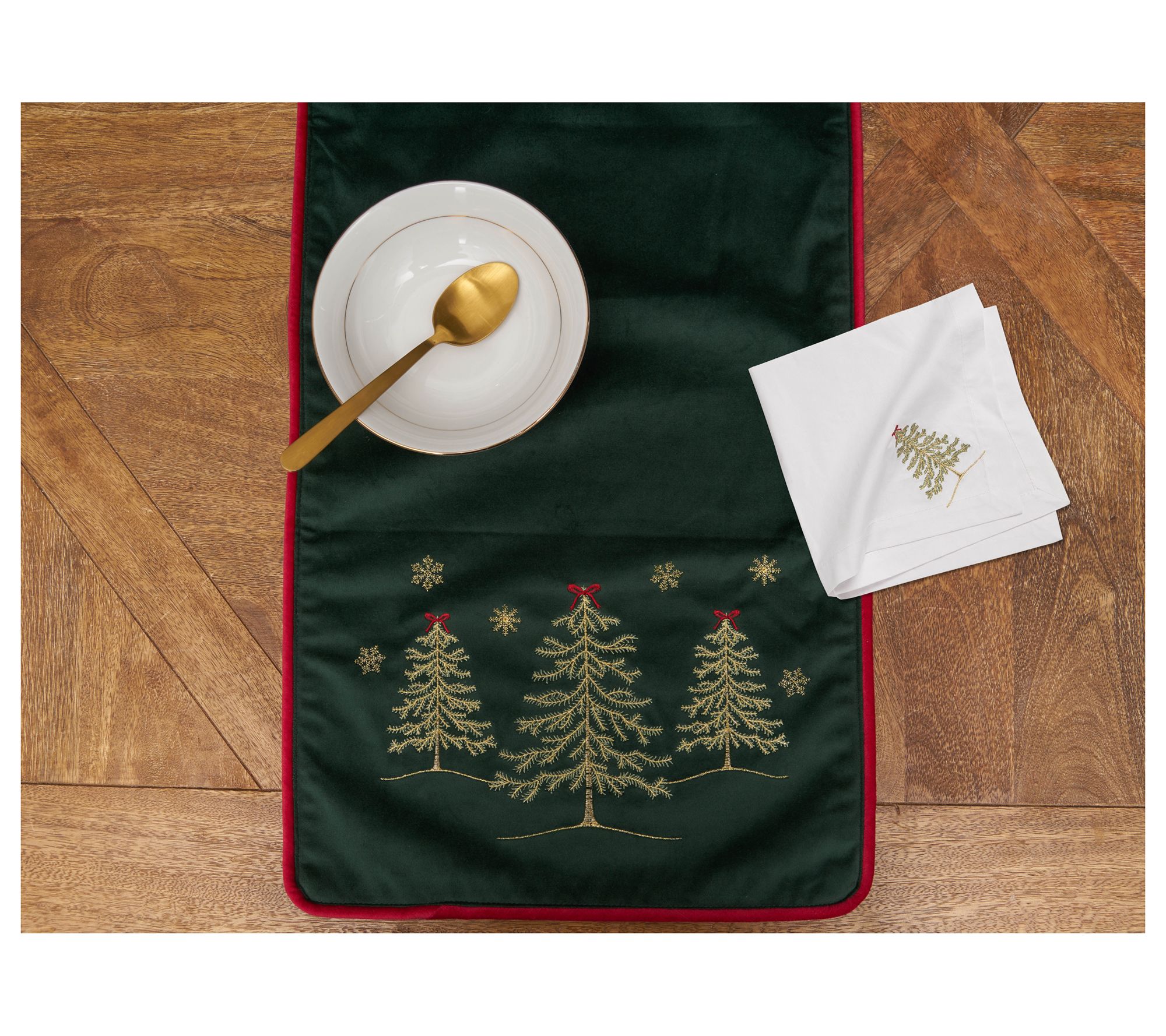 Transform your dining experience with a touch of festive charm from the Christmas Tree Forest Runner. Designed for those special times shared with family and friends, this elegant table accessory sets the stage for memorable gatherings. Pair it with your favorite coordinated table linens, like napkins and placemats, to complete your holiday decor and wow your guests. From the Valerie Parr Hill Collection.