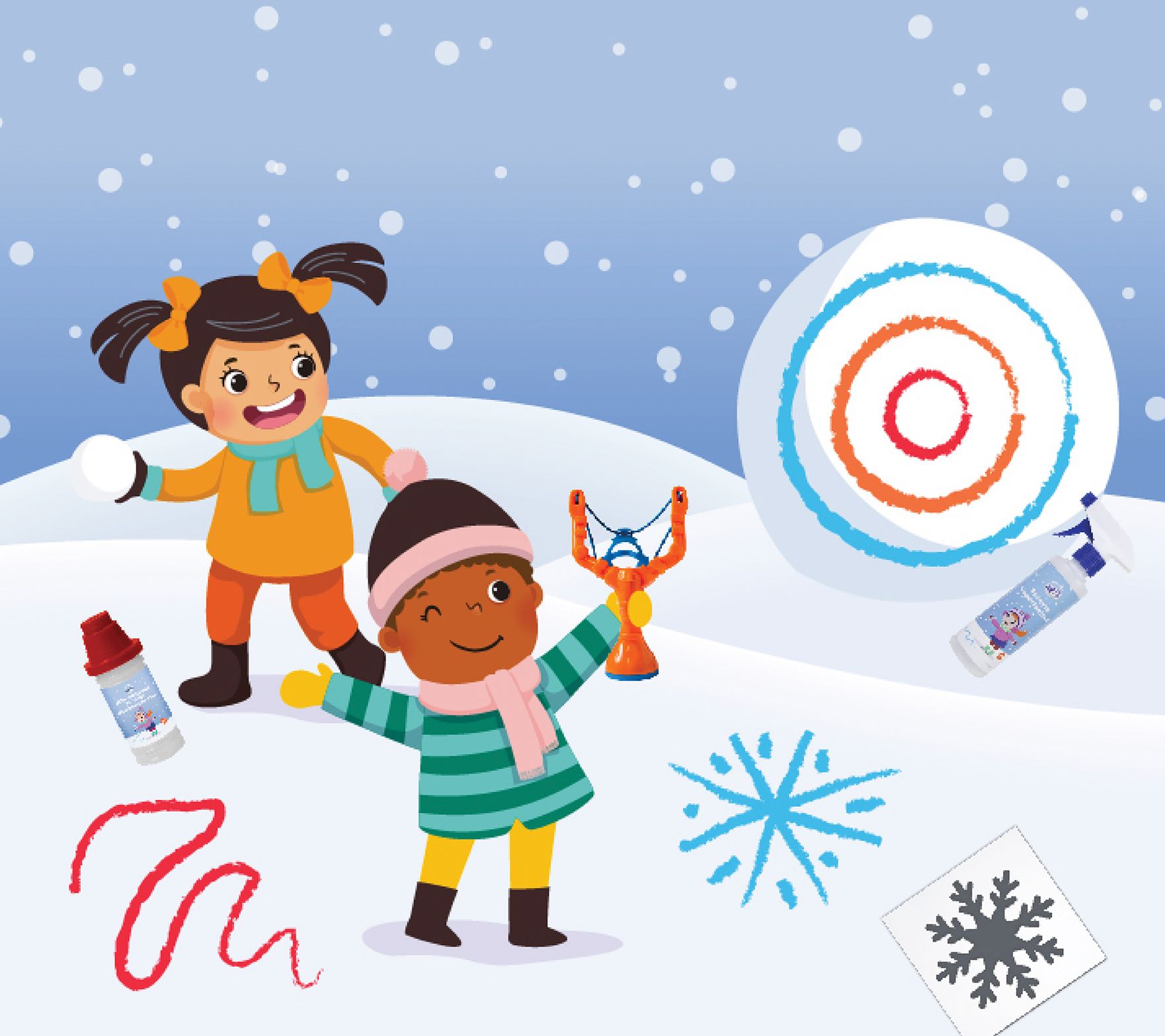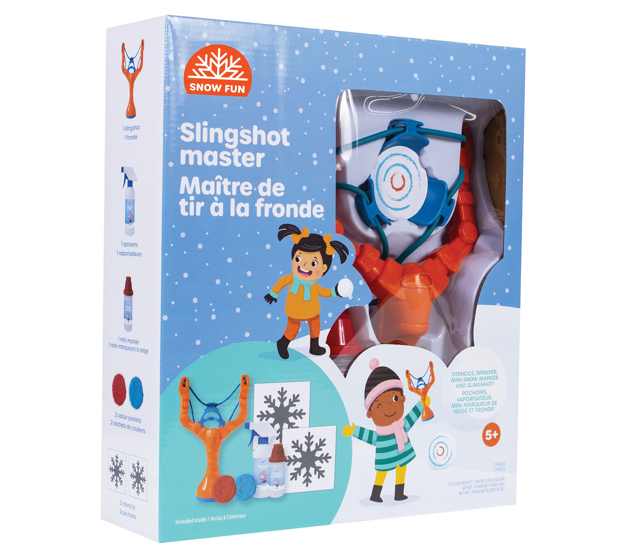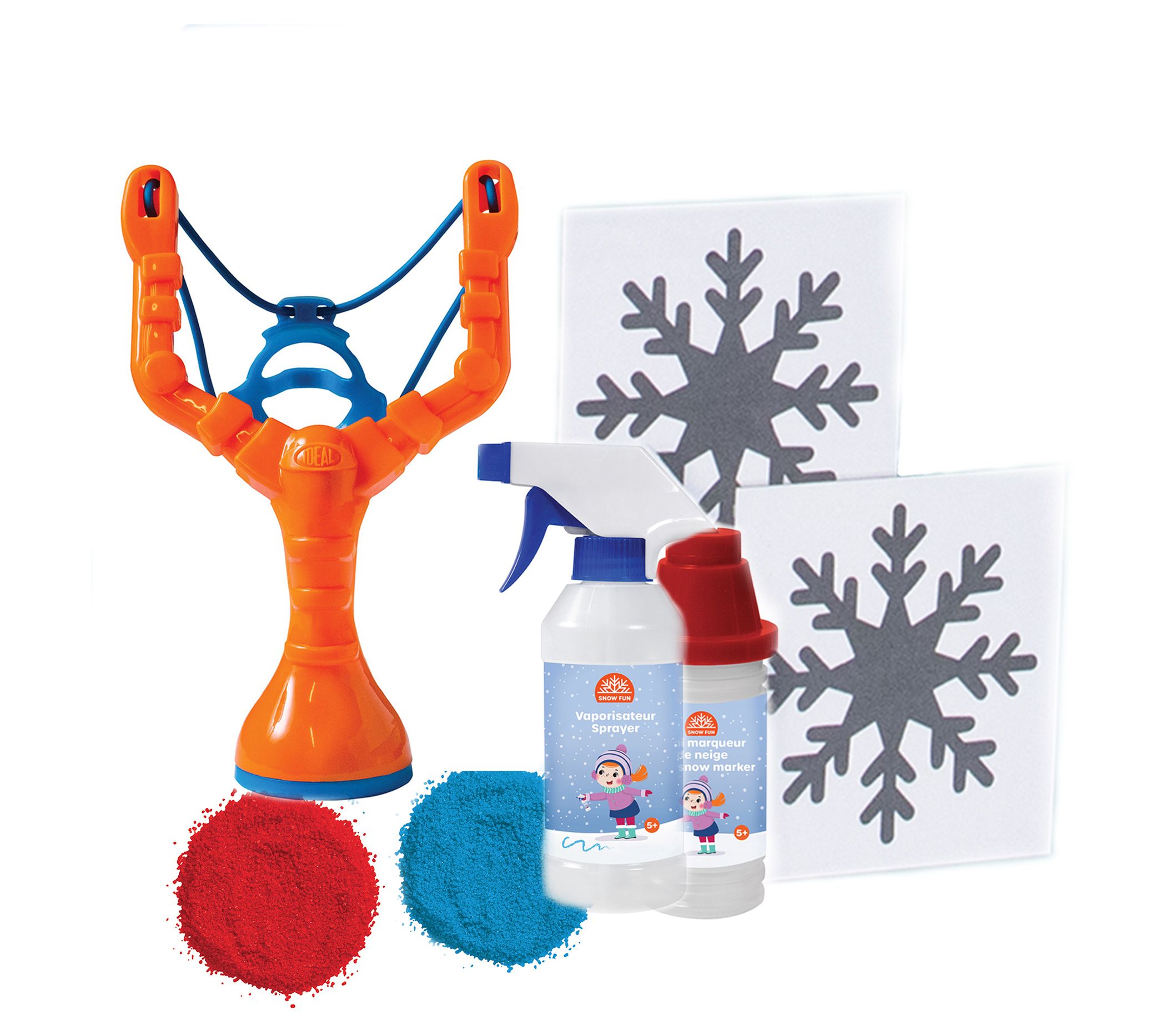 • Includes slingshot, spray bottle, mini mixer, two color packets, and two snowflake stencils