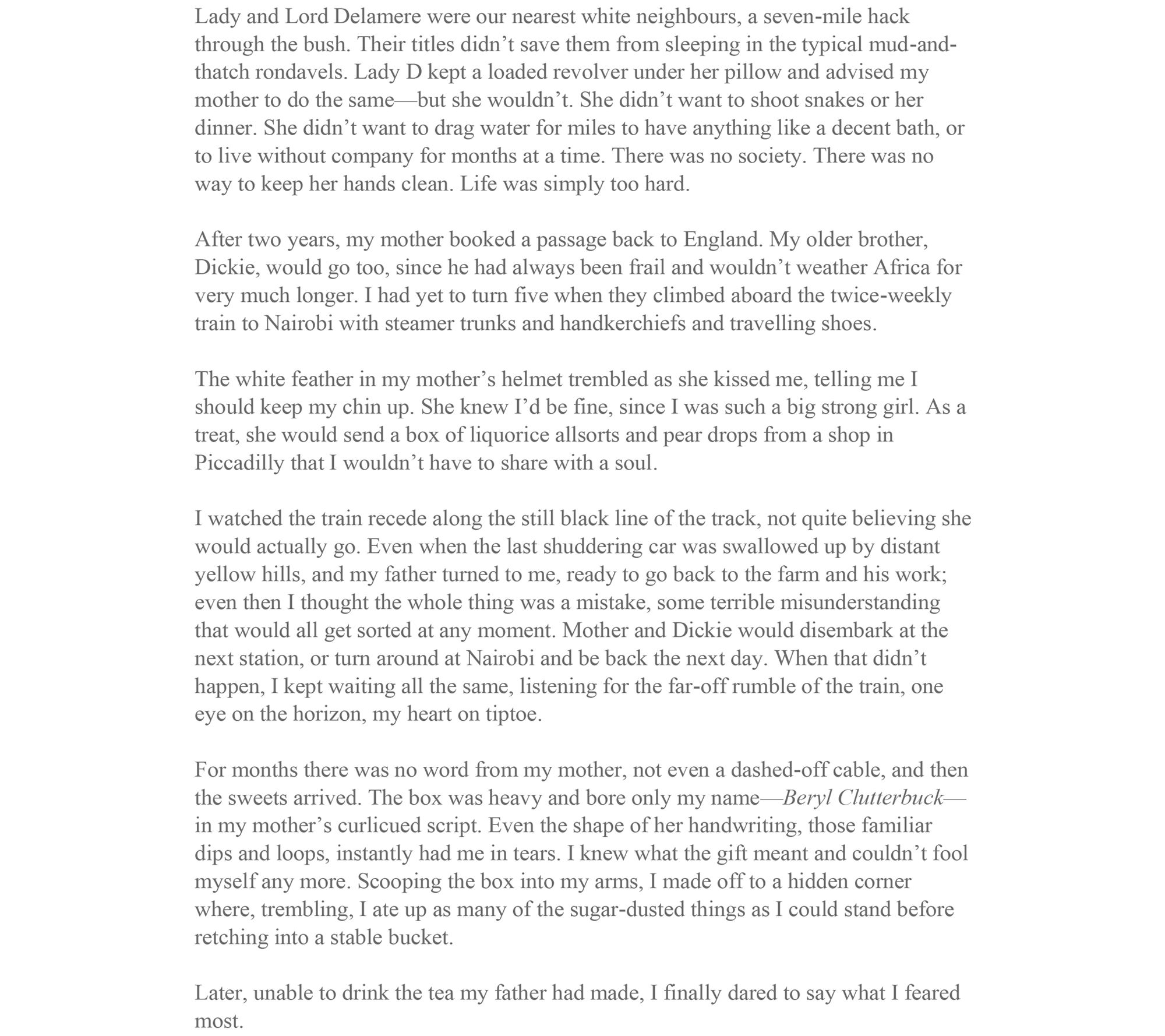 This powerful novel transports readers to 1920s Kenya and reveals the extraordinary adventures of Beryl Markham, a remarkable woman before her time who believed she had the power to soar.