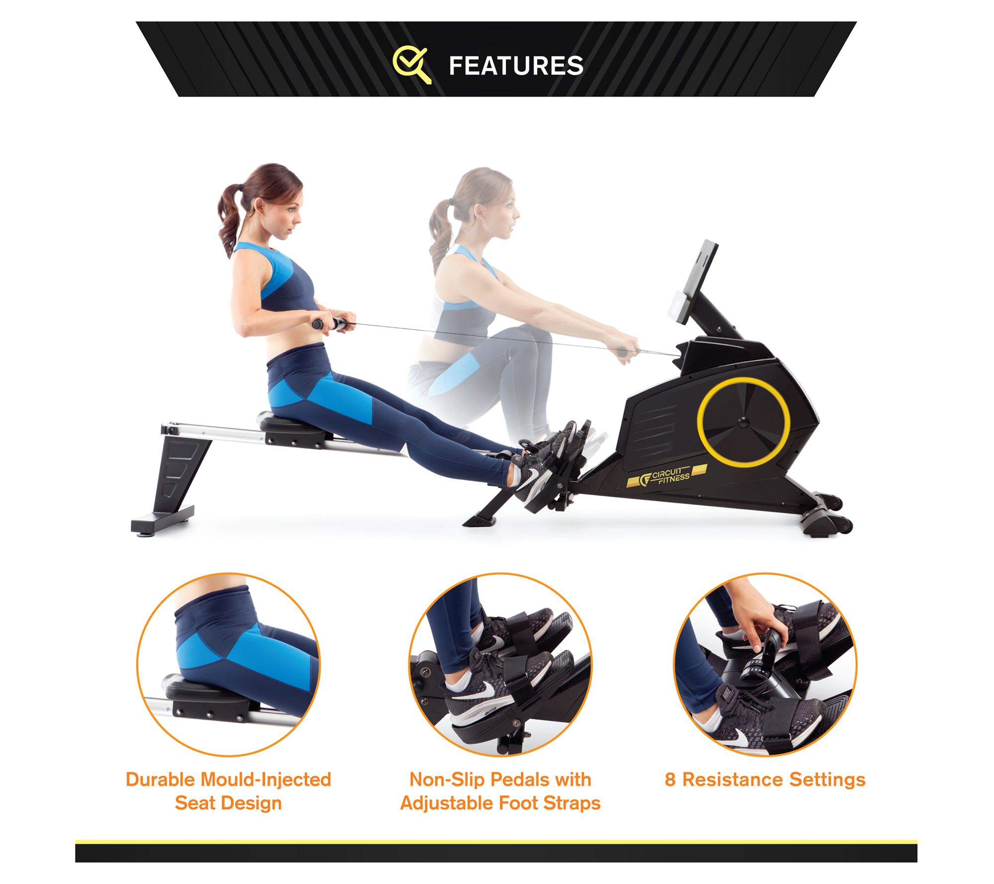 Whether you're a beginner or a seasoned pro, this rowing machine delivers a personalized workout with adjustable magnetic resistance and convenient Bluetooth technology. From Circuit Fitness.