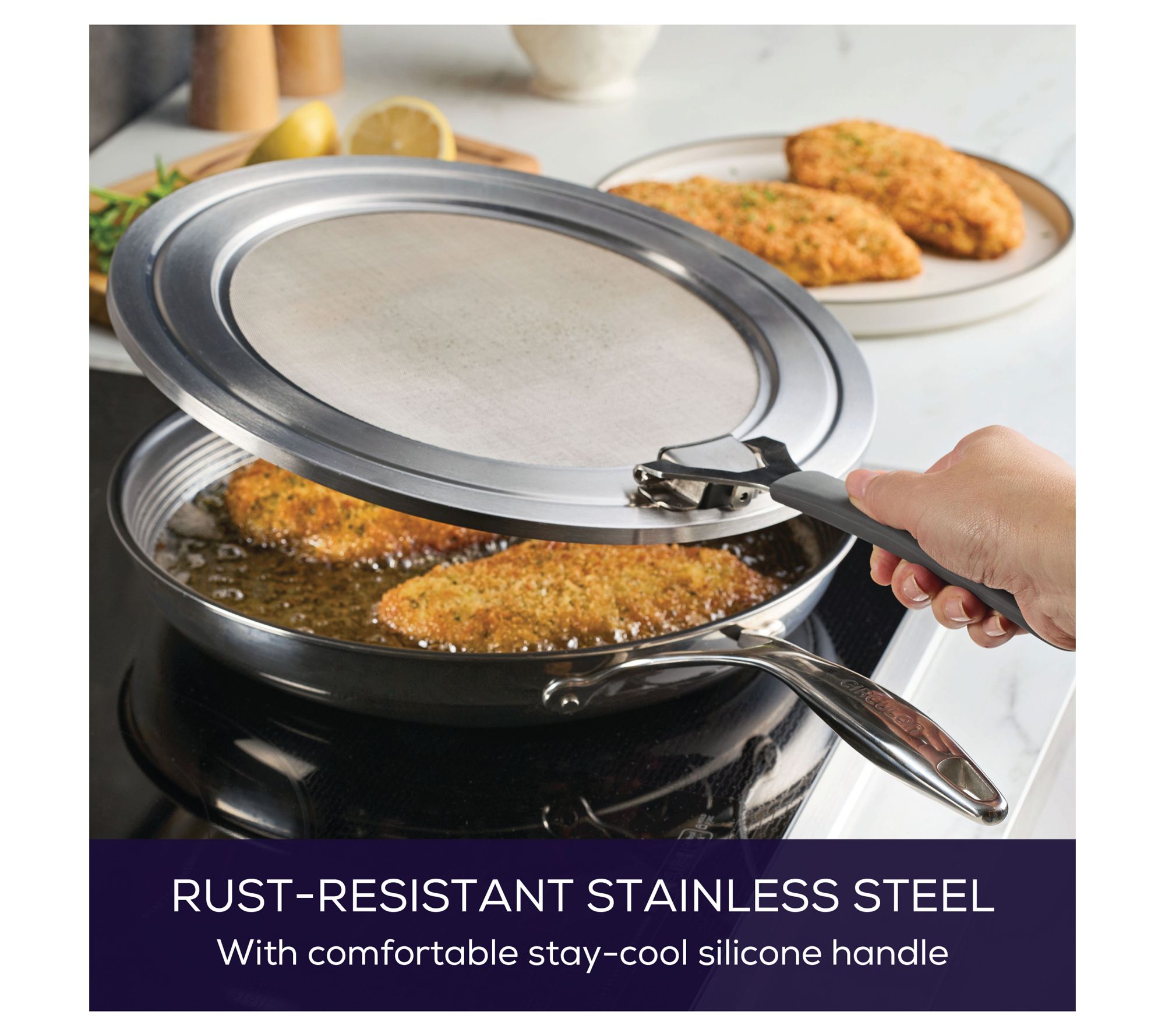 • Includes Circulon 13" universal splatter guard and grease cover