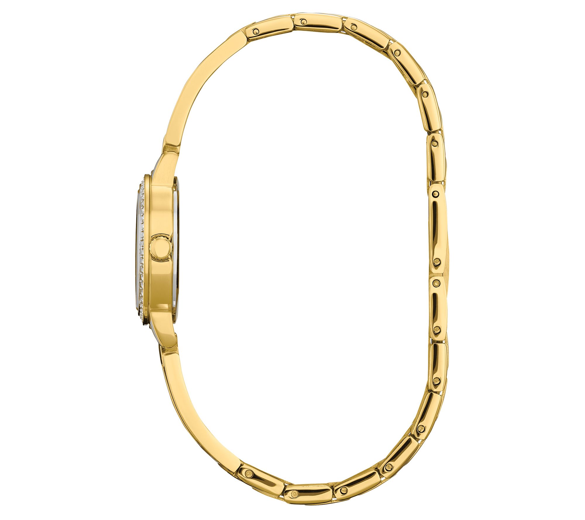• Goldtone stainless steel case with 54 crystals