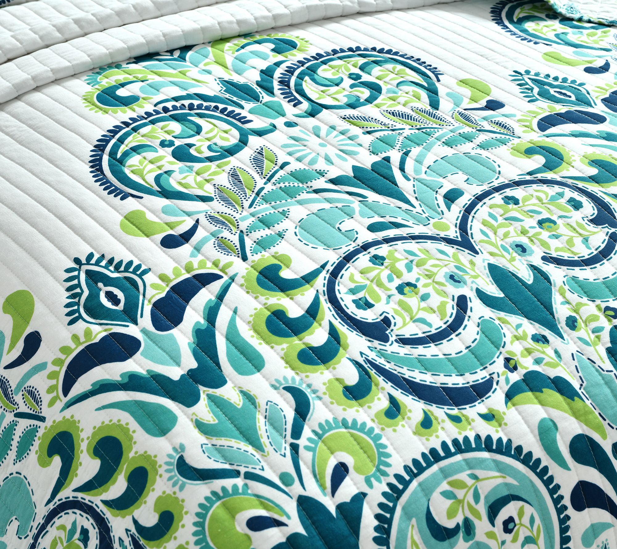 Clara is a modern age beauty with an artistic Bohemian flare. This quilt set has an intricately laid out design that explodes with vivacious colors. From Lush Decor.