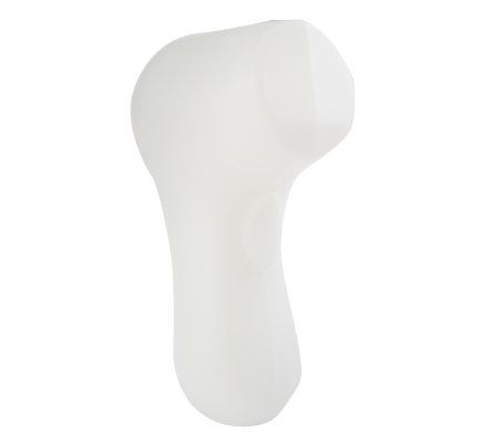 First, remove eye makeup. Wet skin and brush head, and apply cleanser to the skin or directly to the brush head. Press the on/off button and gently massage the face in small circular motions, beginning on the forehead, then moving to the nose, chin area, and cheeks. The outer brushes are designed to contain any residual mist from the brush oscillation, so be sure to hold the brush head flush to your skin. Pressing too hard will impede the motion of the brush and reduce effectiveness.