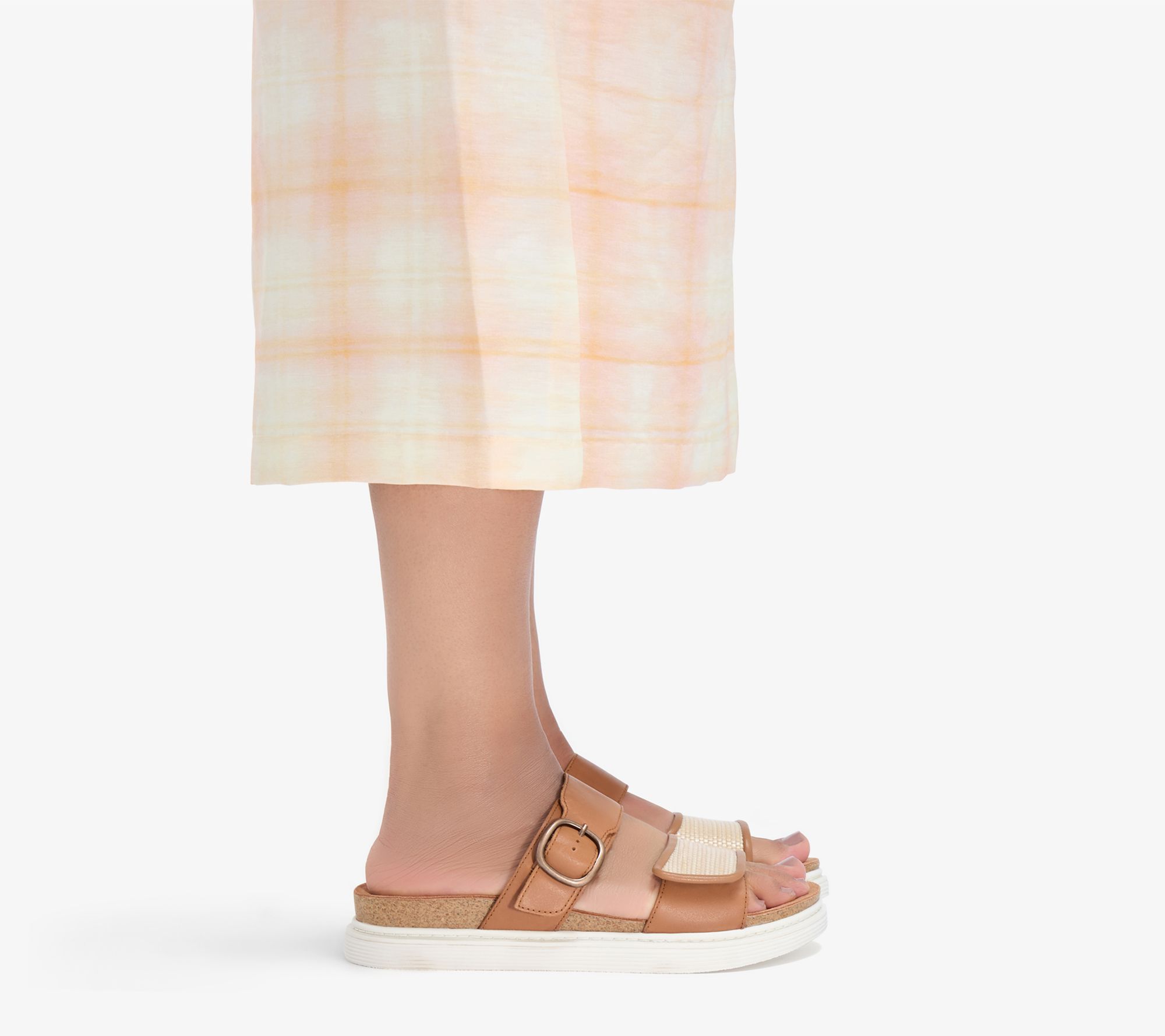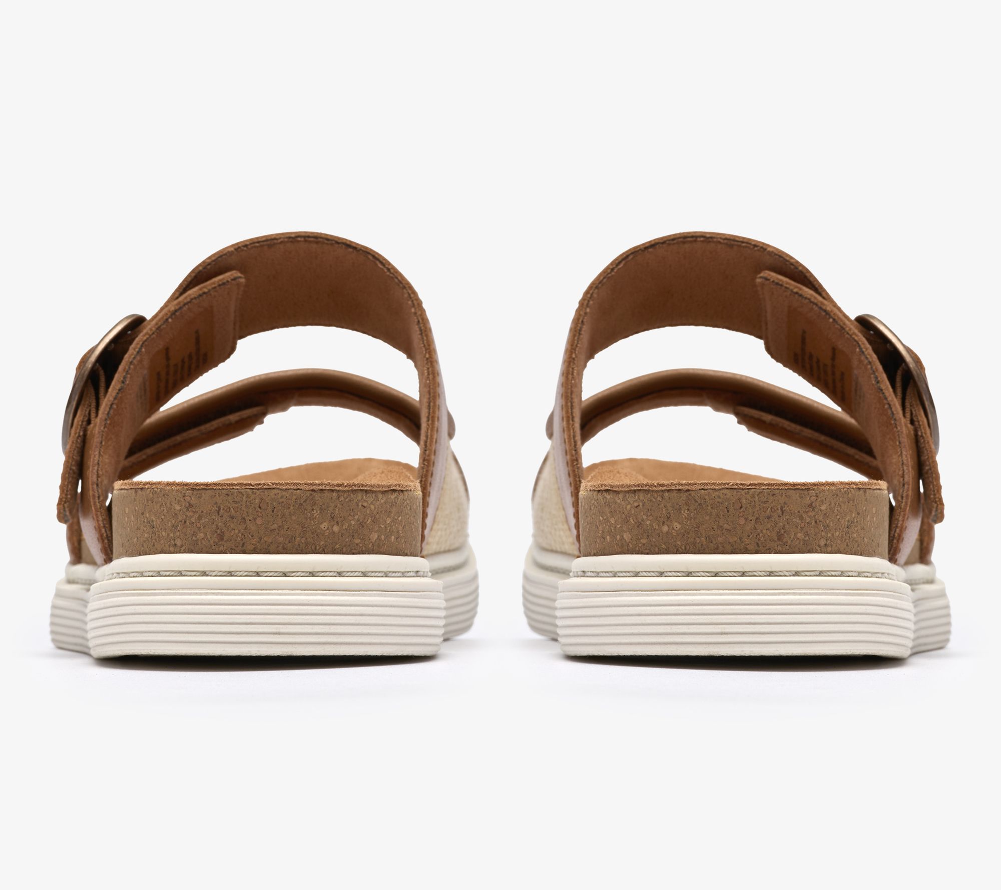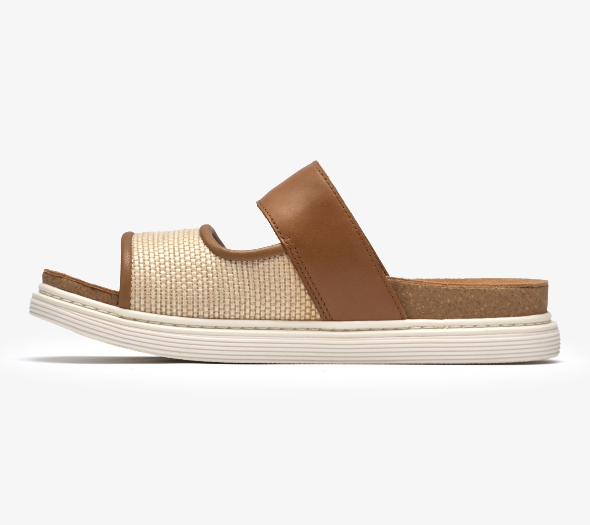 Clarks Artisan Leather Slide Sandals - Arwell Step. Premium leather upper with raffia detailing to vamp strap. Molded Contour Cushion footbed supports every step. Two adjustable straps deliver a secure custom fit. Breathable suede lining. Grippy and flexible TPR sole brings extra stability and traction. Heel Height:1.37" Sole Thickness:1/2". Material:Leather Upper;Balance Man-Made. Fit:True to Size. COO:Import.