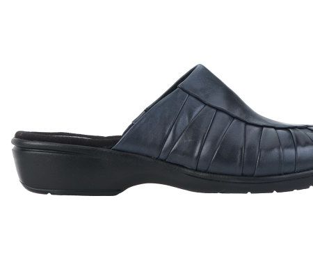 Take a stand for style in these chic clogs! A smooth leather texture with a ruched pattern along the side makes pretty design your steadfast policy. Their padded insole offers all-day comfort, while the textured outsole provides traction and long-lasting durability. From Clarks Artisan.