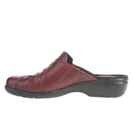 Clog heaven. Decorative stitching detail adds can't-miss style to these sophisticated leather clogs. From Clarks.