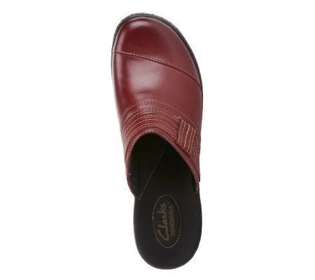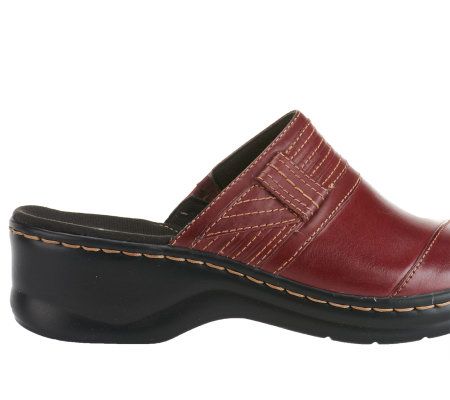Well adapted to change. The Lexi Arctic lightweight clogs cushion your every step, and stay flexible as you walk. Contrast stitching on the vamp adds interest to the simple and classic leather shoes. From Clarks Bendables.