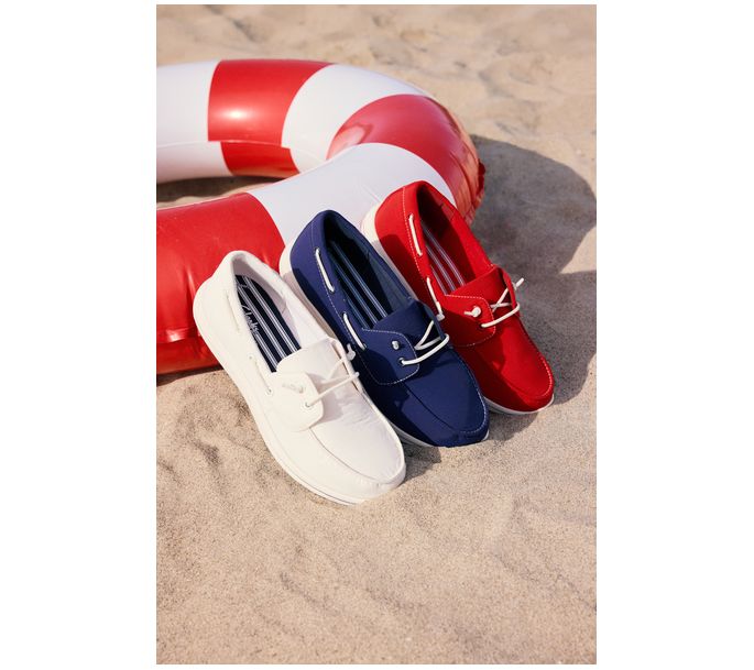 Weekend errands and casual days are all the more comfortable with these boat shoes, offering stretch panels for effortless slip-on convenience. Plush Cushion Soft foam underfoot matches grippy, flexible soles for stable, cushioned steps from pavement to park. Soft textile lining enhances every outing with a gentle feel. From Clarks Footwear.