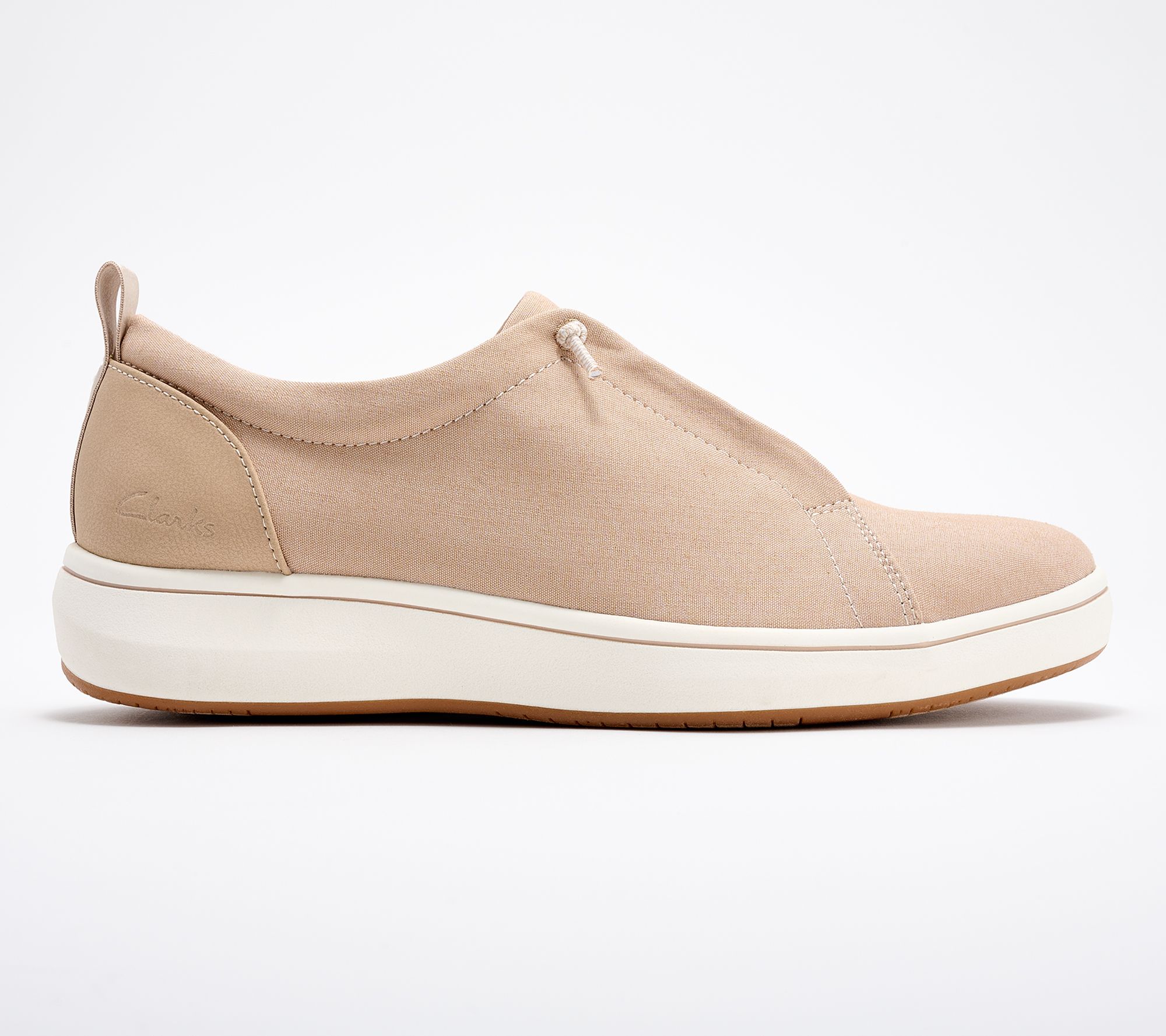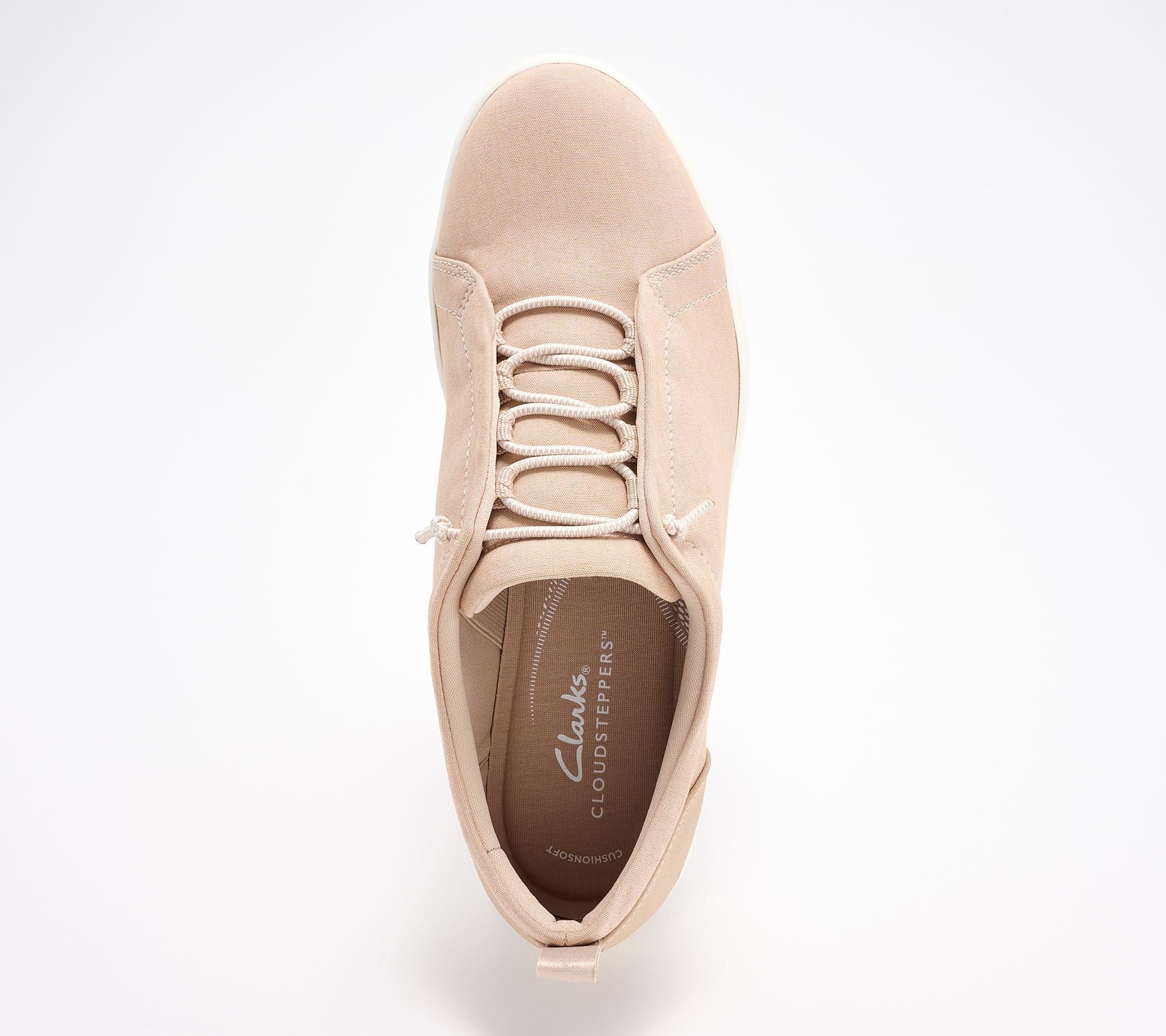 Everyday errands, morning at the park, or after-dinner walk with neighbors -- these Clarks CLOUDSTEPPERSTM help you breeze through your day with comfort and ease. The smooth jersey lining and super-soft textile upper embrace the shape of your foot, while the signature breeze stripe adds a sporty touch. Bungee stretch laces provide a personalized fit, while the removable Cushion Soft EVA footbed gives you superior cushioning. From Clarks Footwear.