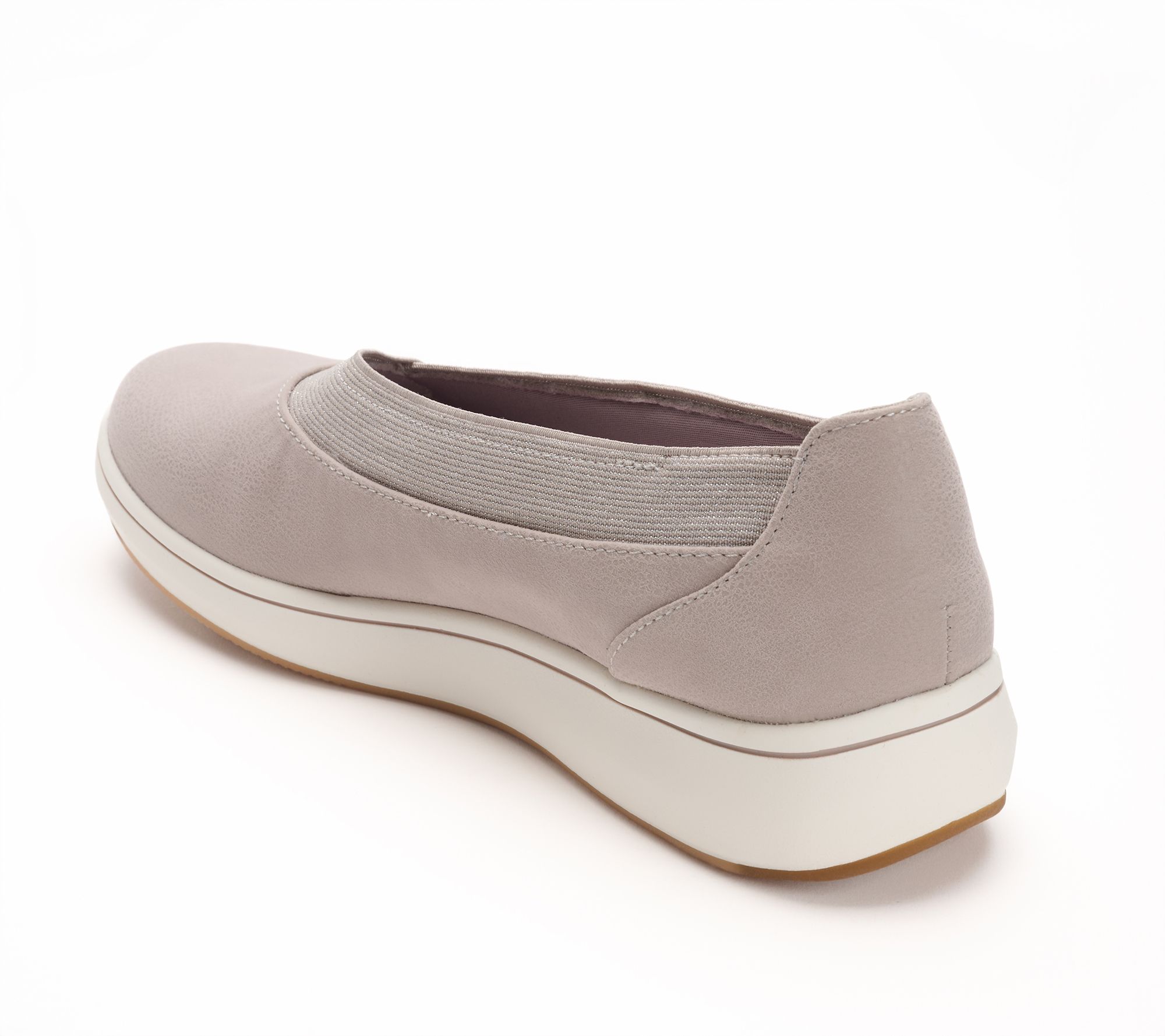 Slip on these sweet shoes and face your day in comfort and style. The sleek silhouette fits in with any casual look, while the removable footbed allows for customized support. From Clarks Footwear.
