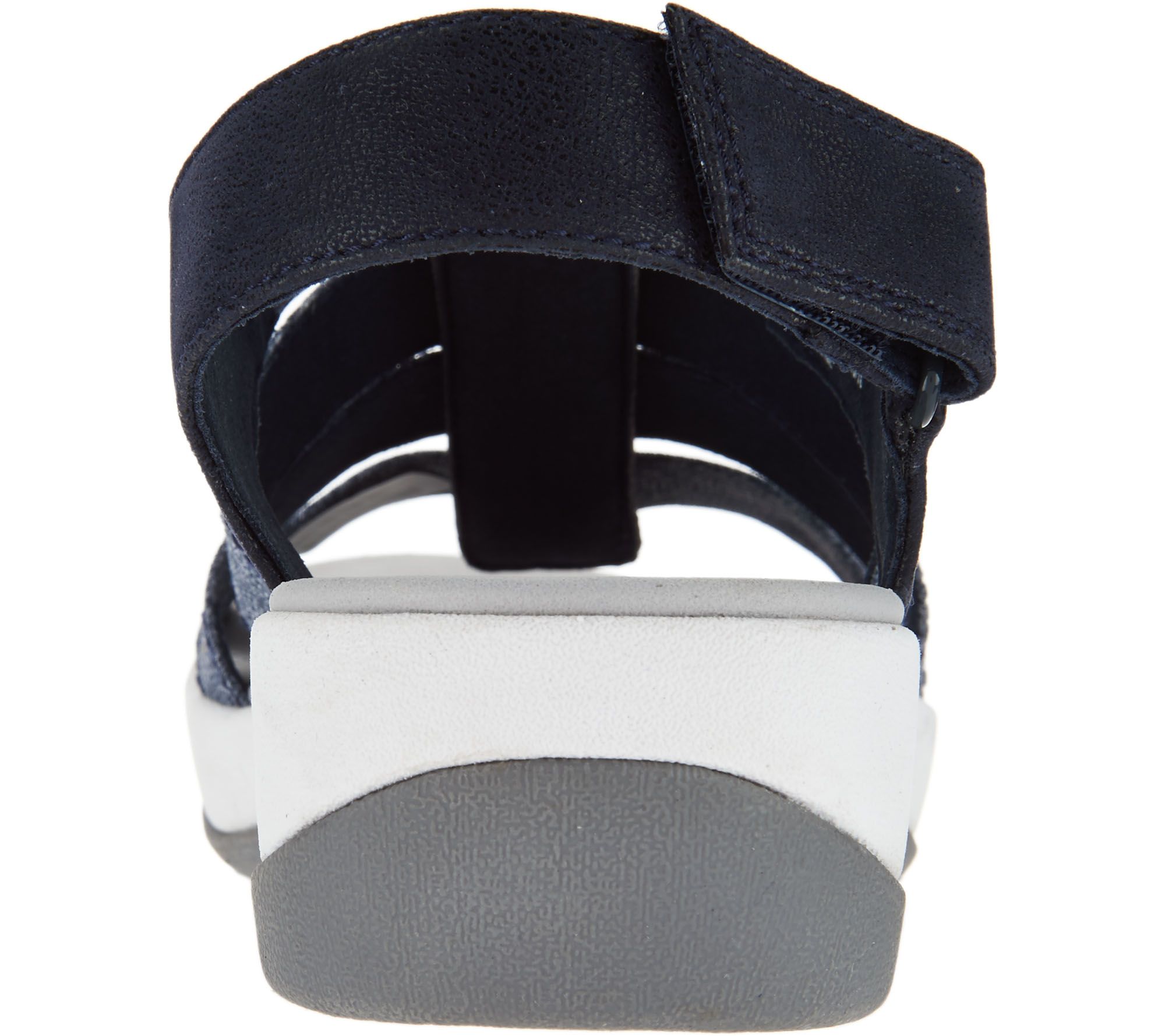 Mixed-media, multi-strap upper; elastic toe strap; adjustable ankle strap with hook-and-loop closure; open toe