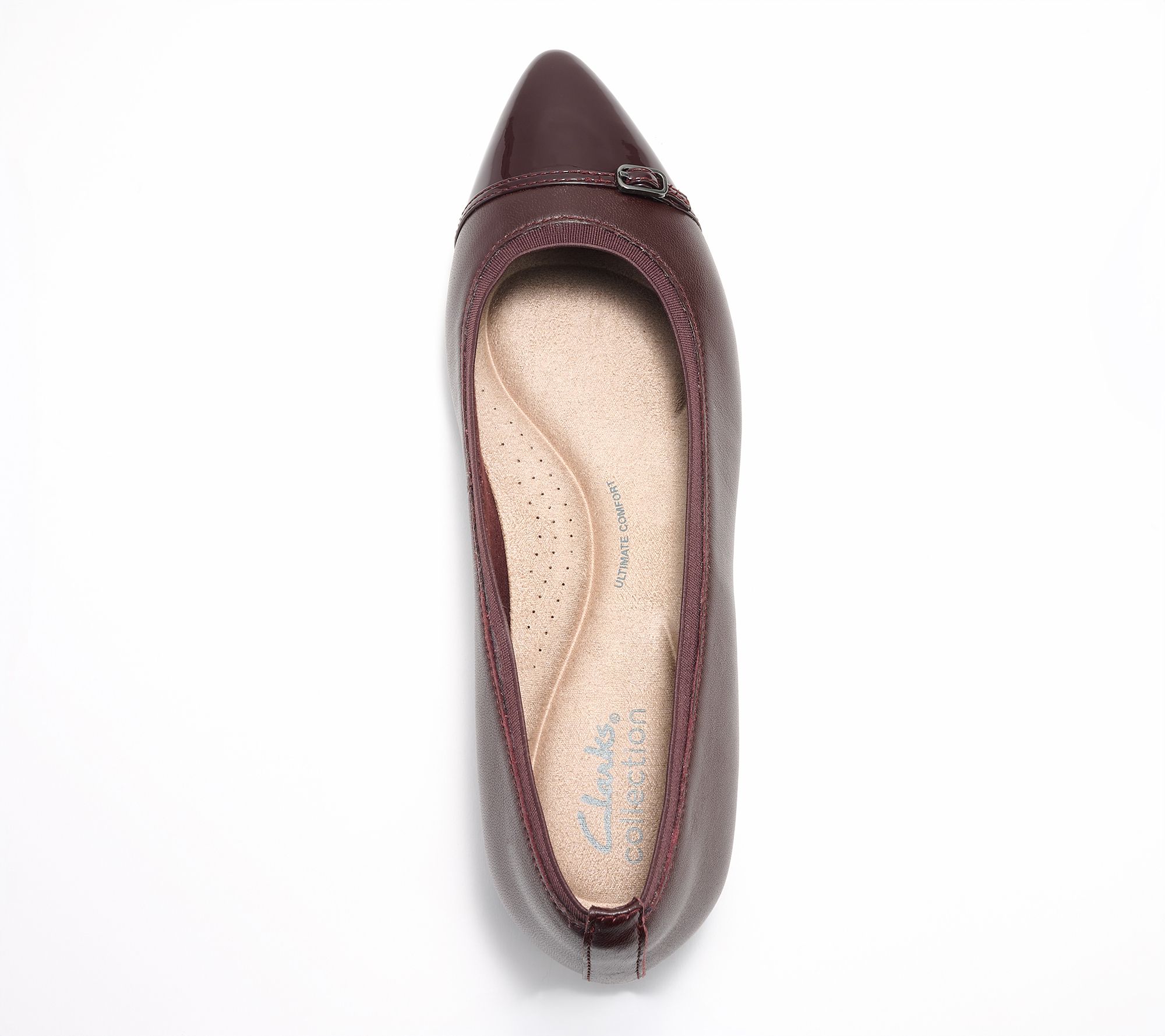 Early meetings or weekend outings feel easier when you slip into these leather flats from Clarks. A modern pointed toe and delicate buckle detail add polish to your outfit, while the cushiony foam footbed keeps each step comfortable, even when the day feels long. From Clarks Footwear.