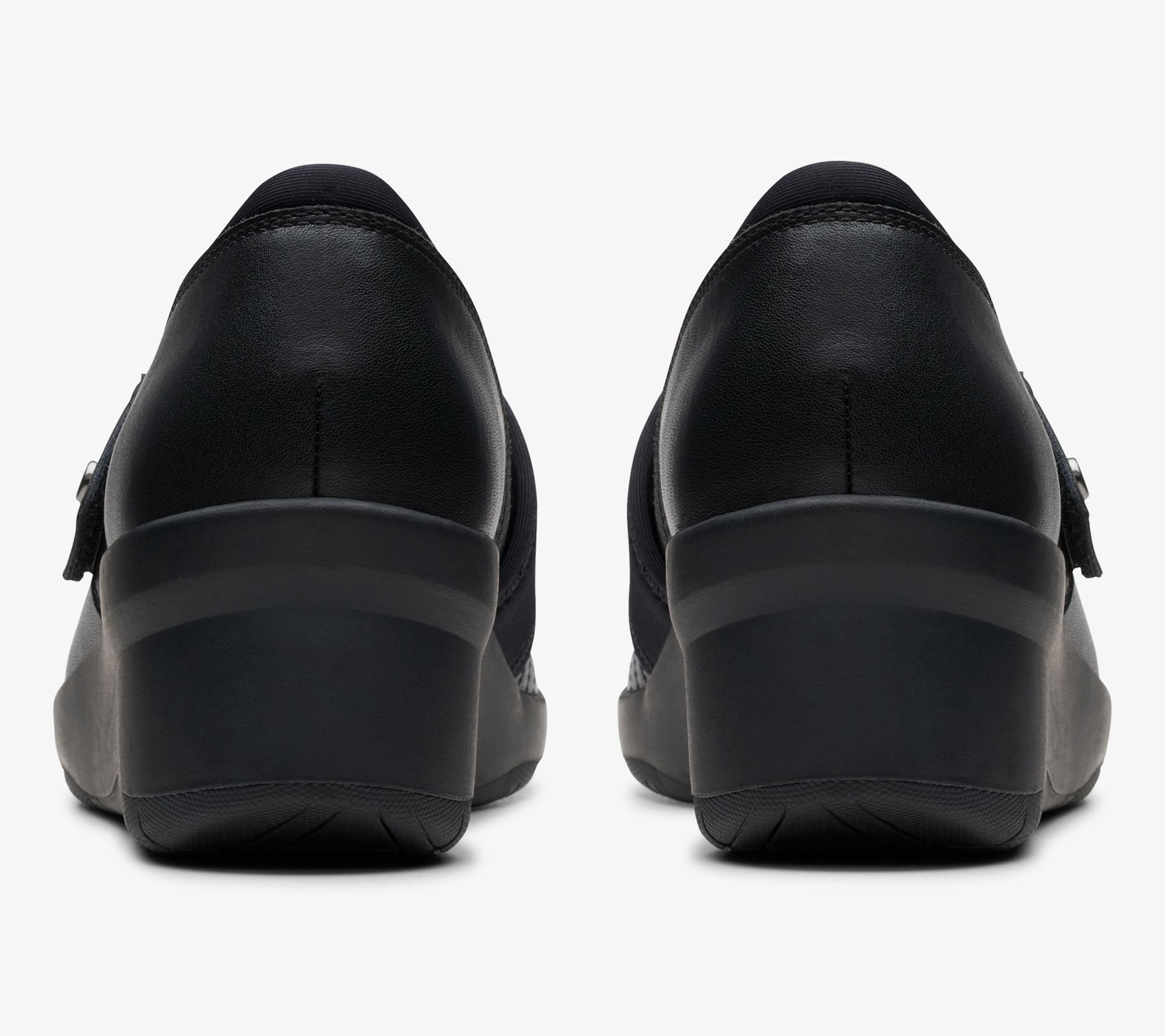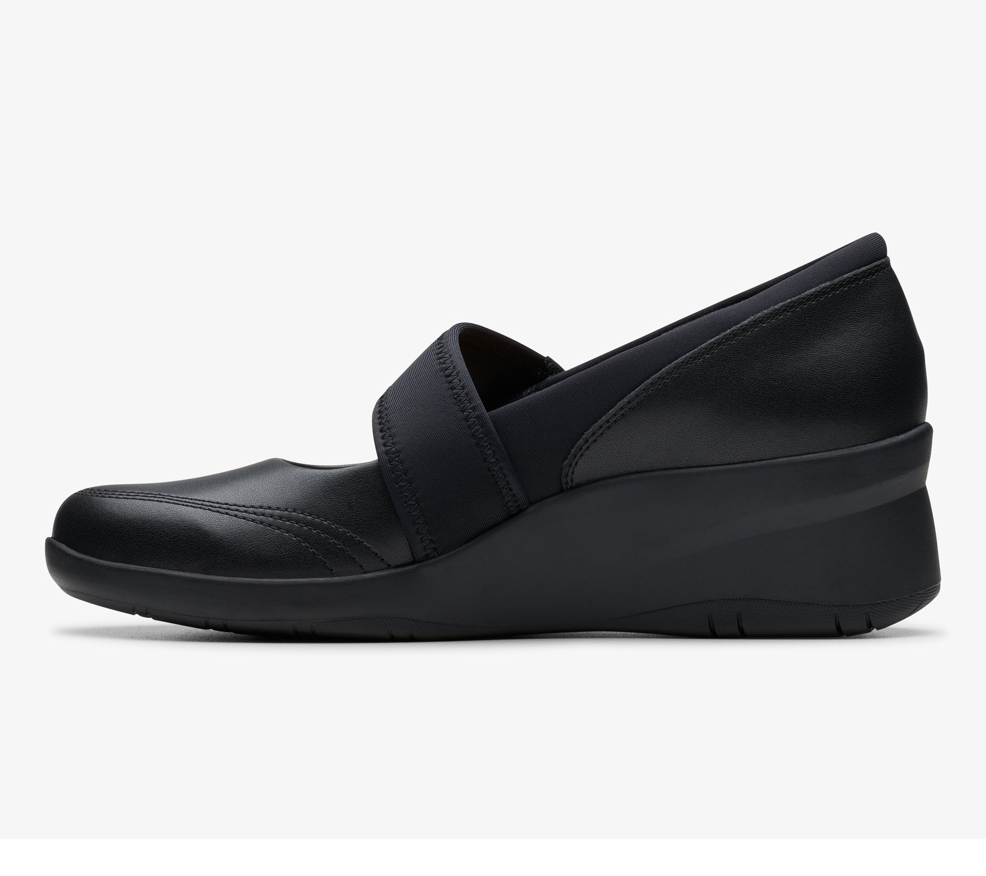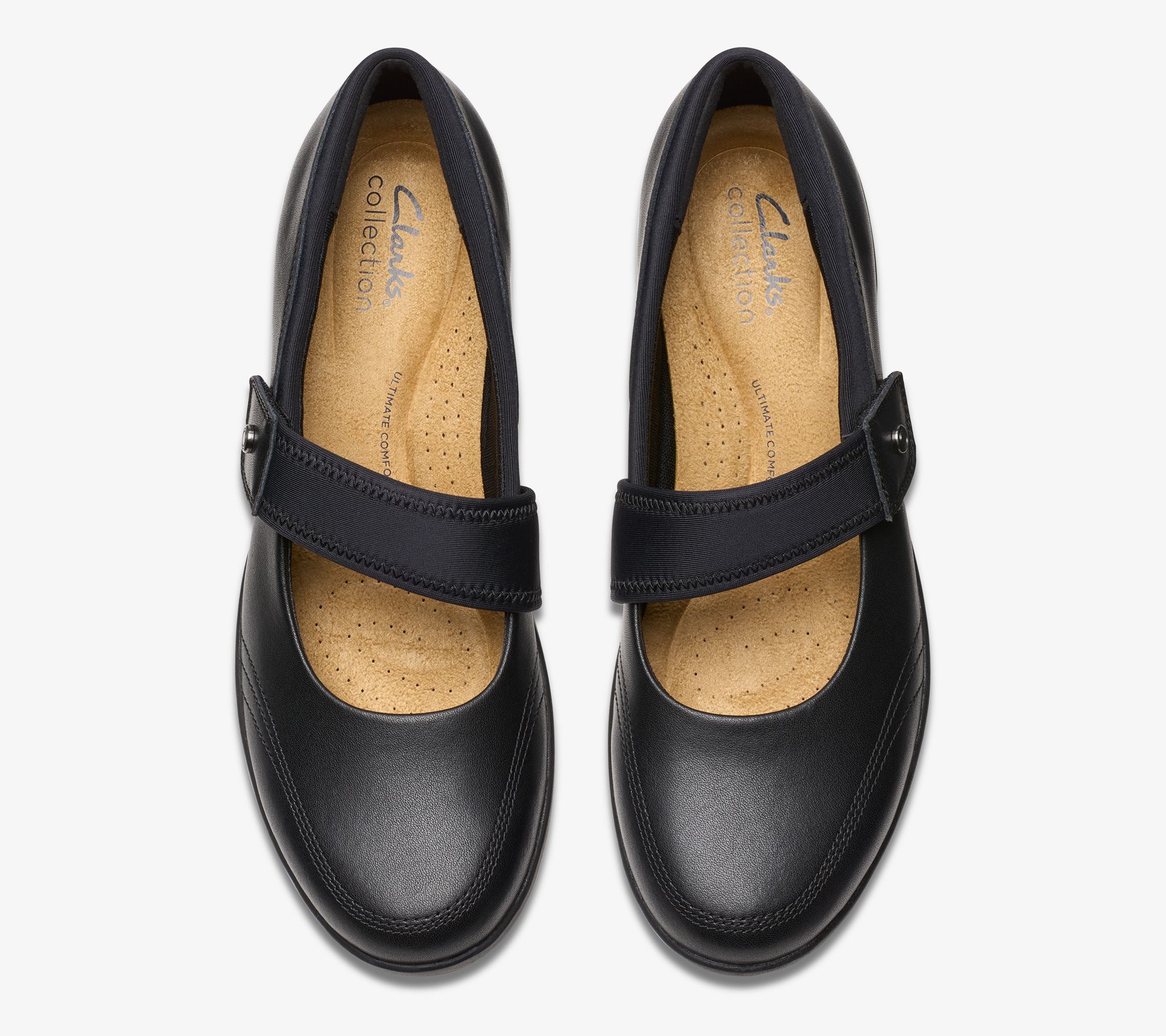 A flexible, sculpted wedge to take you from back-to-work and beyond, this Mary Jane wedge combines premium materials with effortless comfort. Crafted from sleek black leathers for ultra-versatile wear, this staple profile comes together with an Ultimate Comfort footbed and a flexible, lightweight sole. Where will yours take you? From Clarks Footwear.
