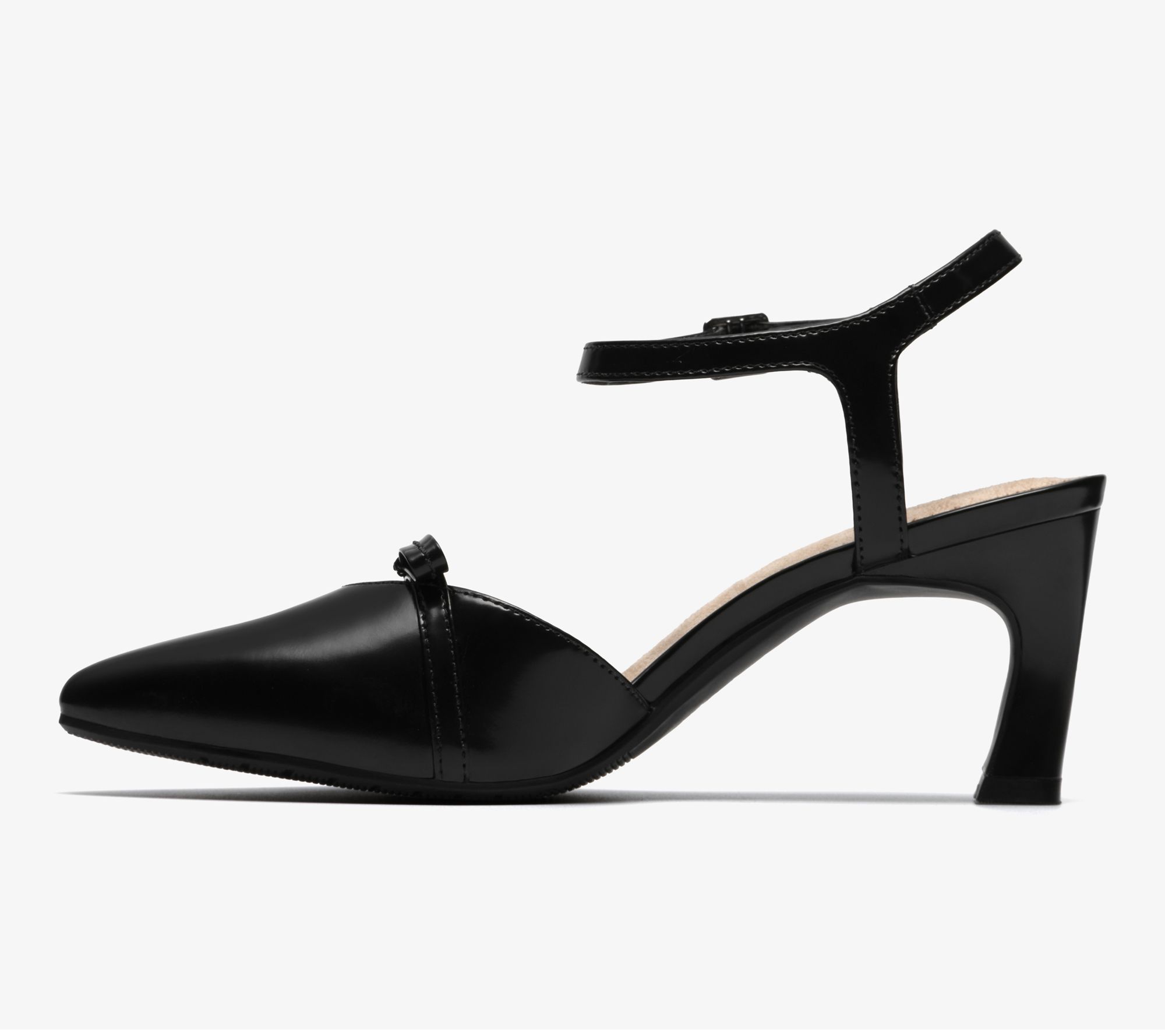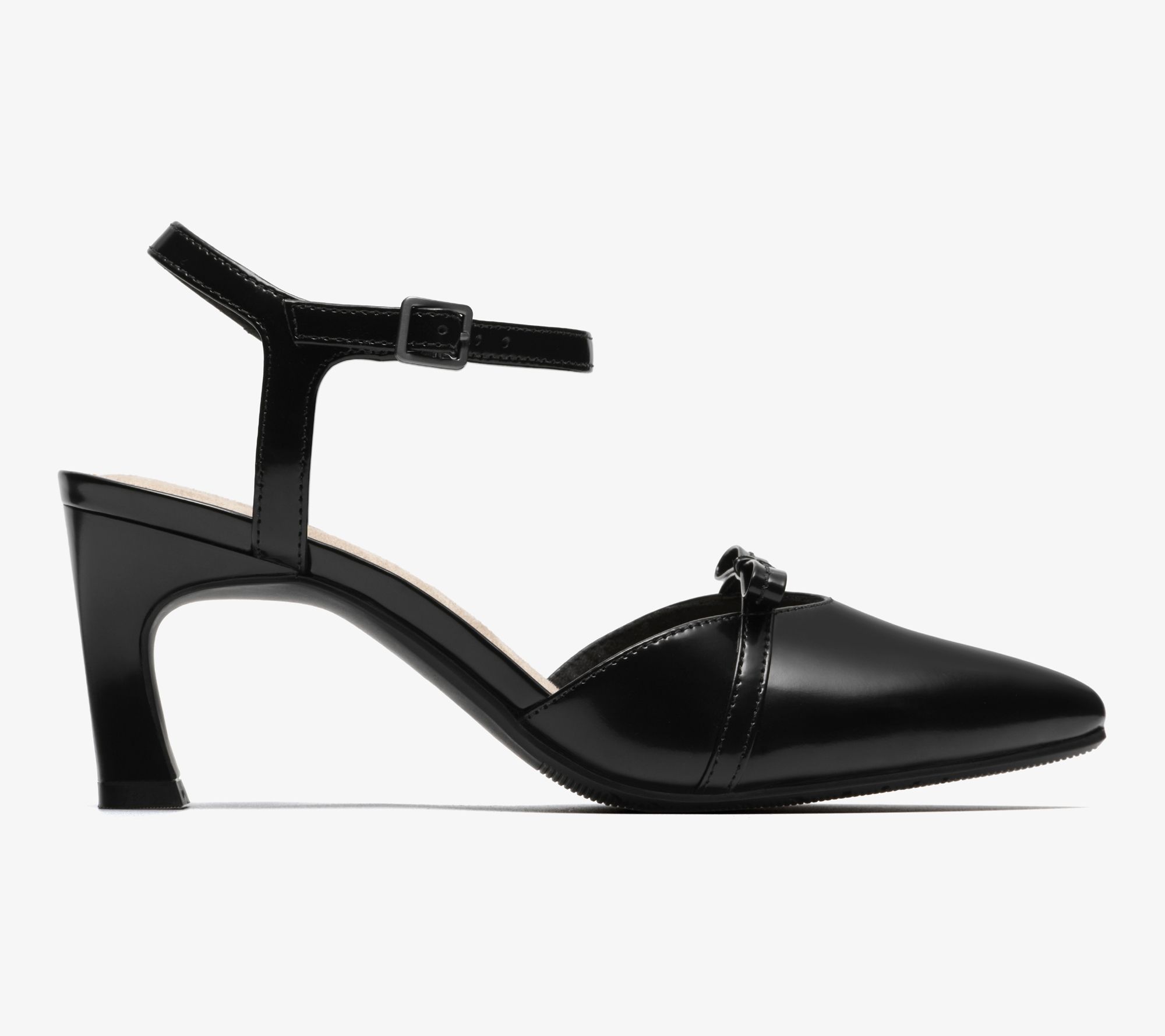 • Adjustable ankle strap with buckle, bow detail