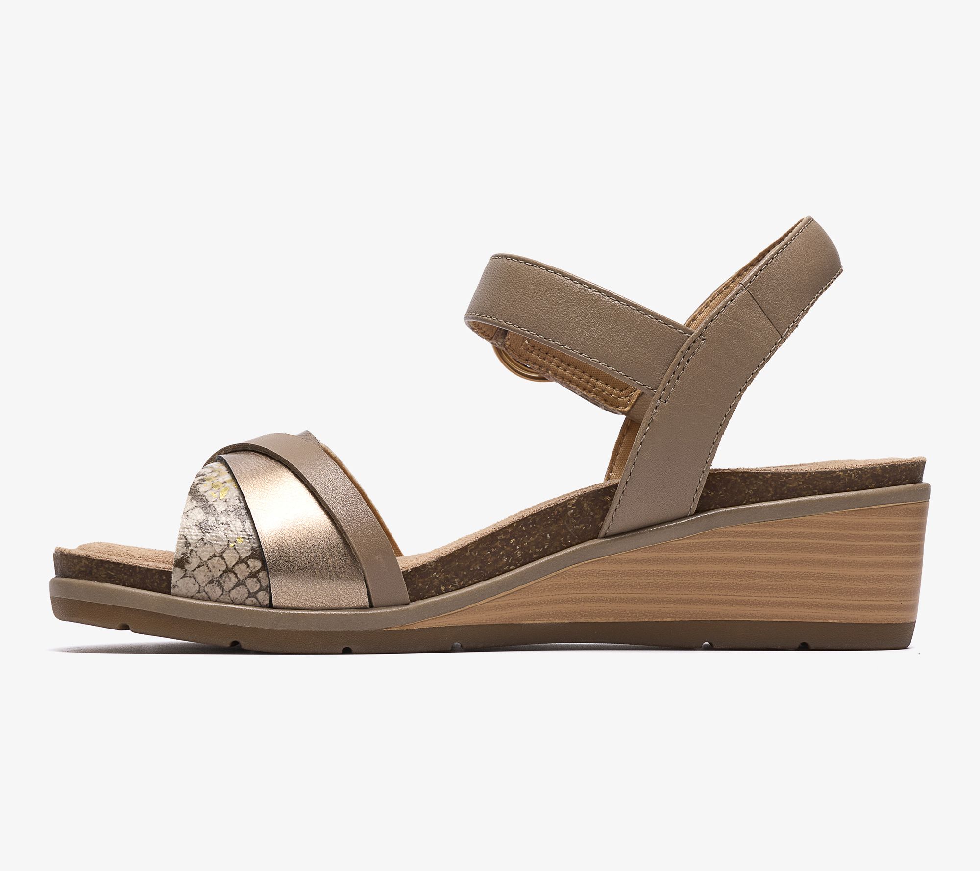 Heading to a summer garden party or just running daily errands, these leather wedges provide easy support and relaxed style in one go. The soft jersey lining feels gentle against your skin, while the adjustable strap customizes your fit for lasting comfort on busy days. Decorative contrast details add flair to every outfit. From Clarks Footwear.