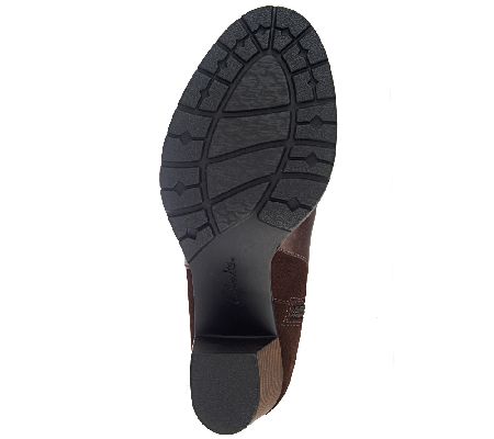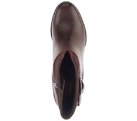 Zip and go. Getting out the door is easy with these ankle boots from Clarks Bendables. They're as wearable as they are stylish, thanks to the padded insole, textured outsole, and convenient inside zipper. The buckle is just for show, but nobody has to know. From Clarks Bendables.
