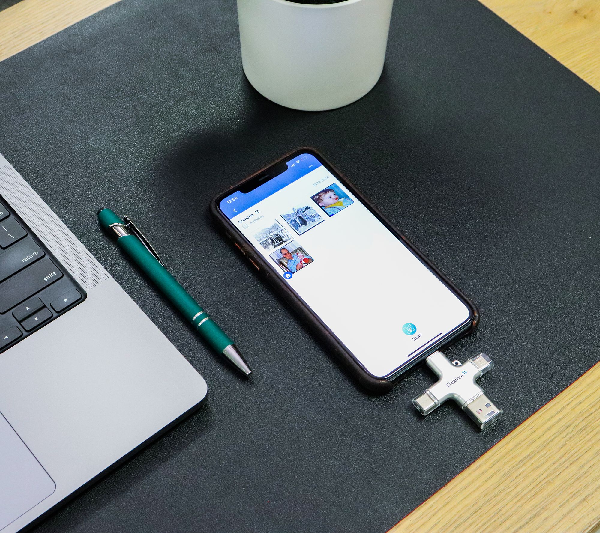 A simple and smart solution for your storage woes, the compact and convenient ClickFree Pro Backup Genius features four connectors so you can easily expand the capacity of any device -- fitting more photos and videos on your phone, tablet, or computer without worrying about running out of space.