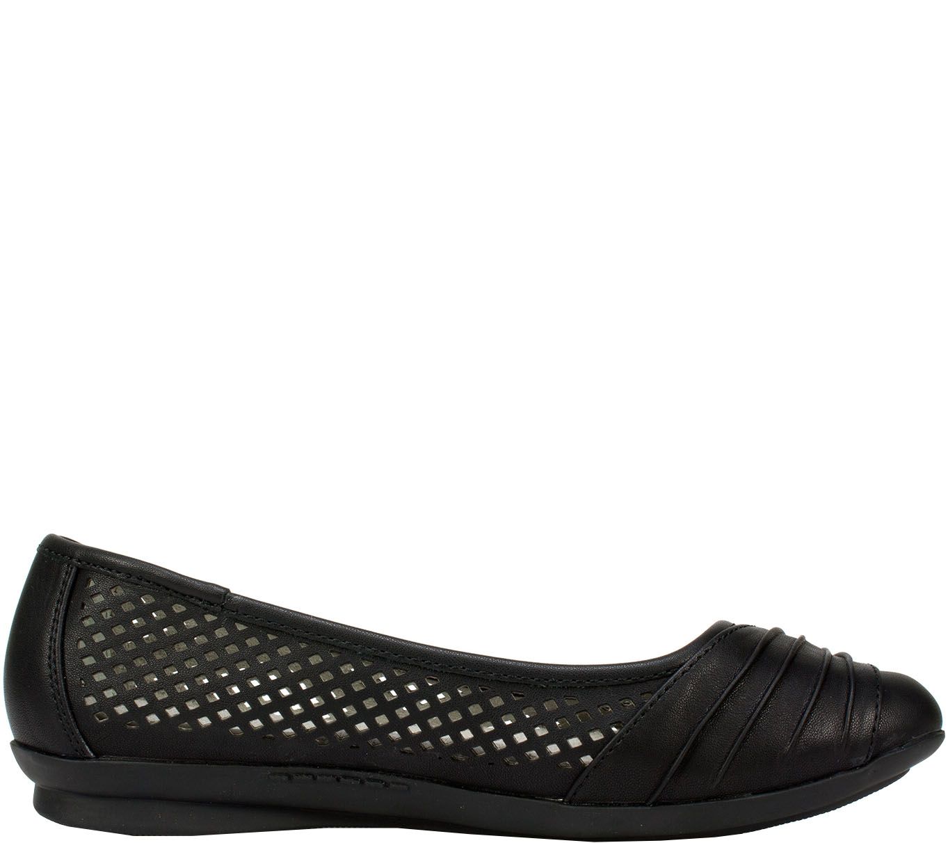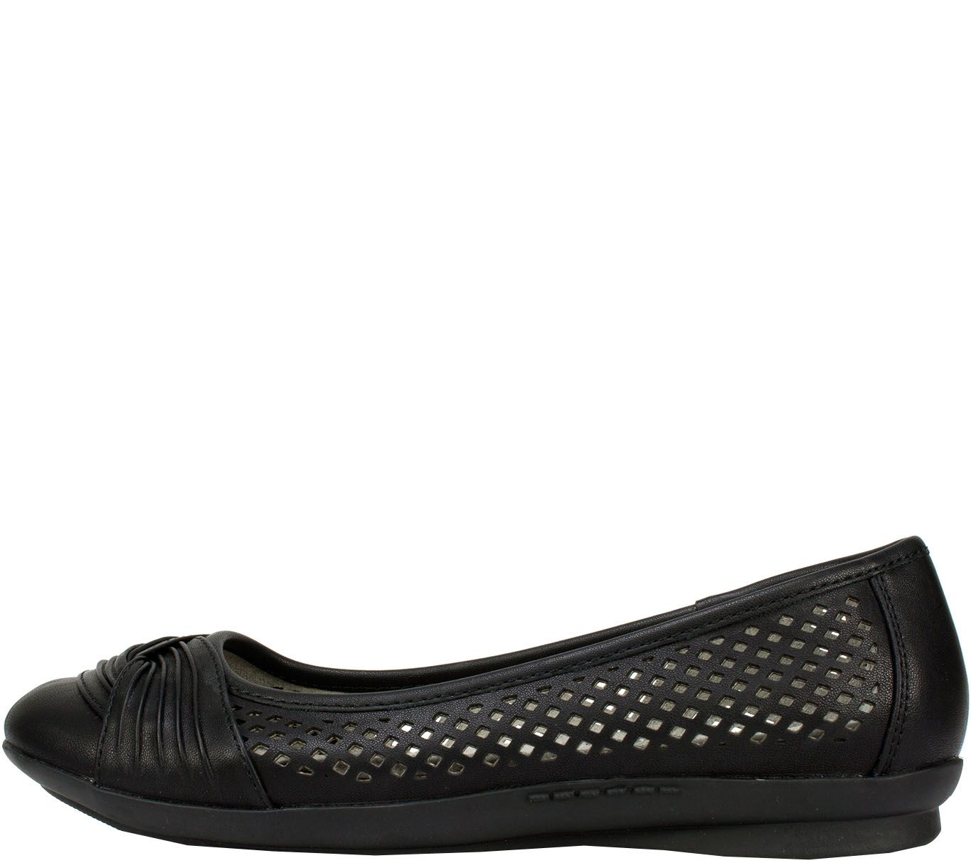 • Slip-on, ruched detail across toe, diamond cutouts on each side