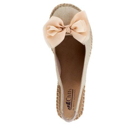 Smile-inducing style. Don't be surprised if these sweet slingback espadrilles inspire feelings of happiness the instant you slip them on. Topped with a bow, they'll look fabulous with your cropped pants and sundresses. From Cliffs by White Mountain.