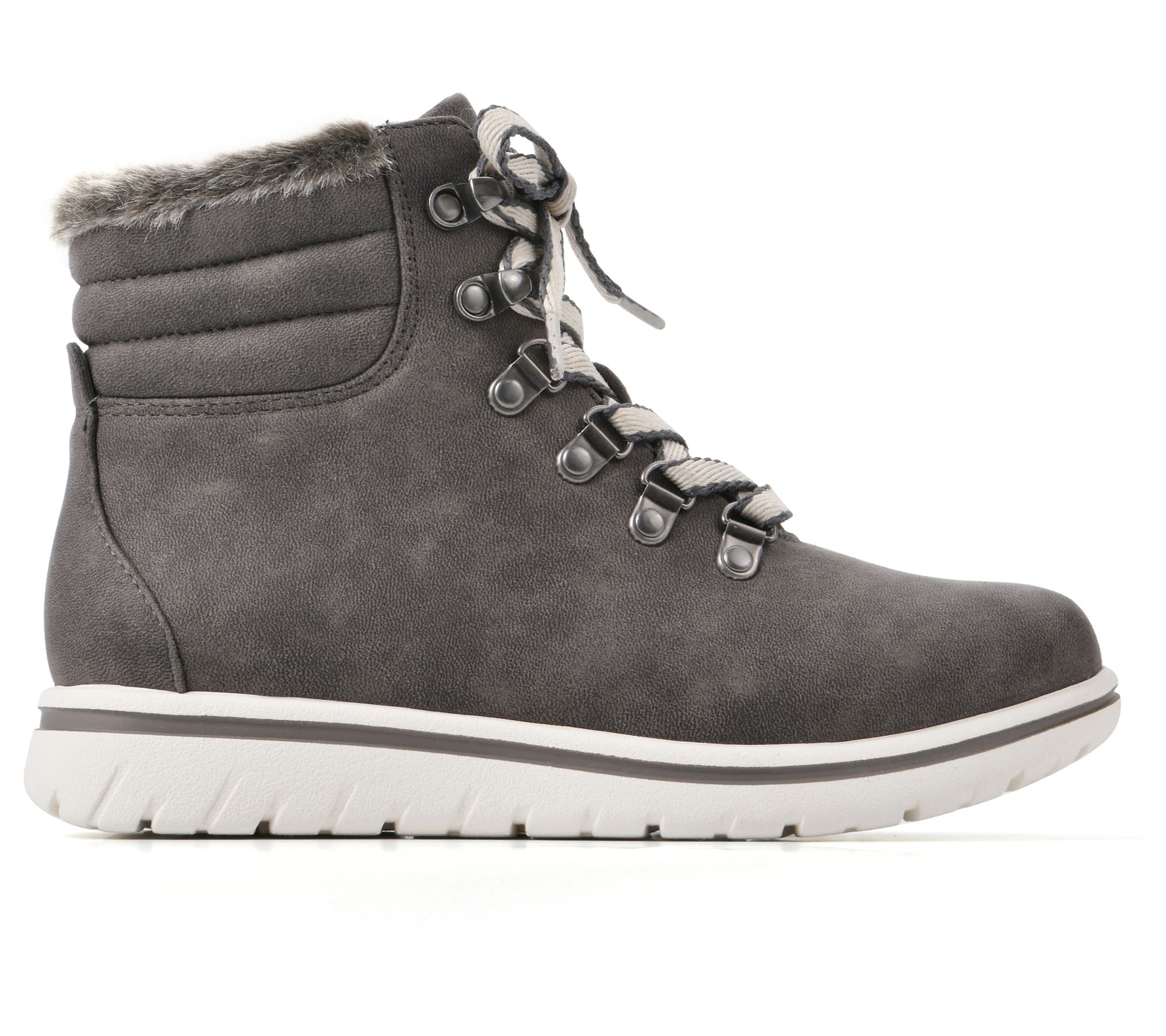 Enjoy warm comfort while hiking through the mountains or strolling through the park in these cozy lace-up booties featuring soft faux fur cuffs. From Cliffs by White Mountain.