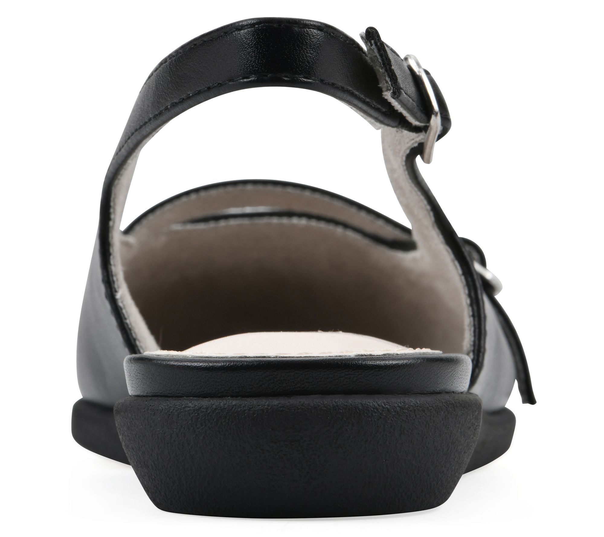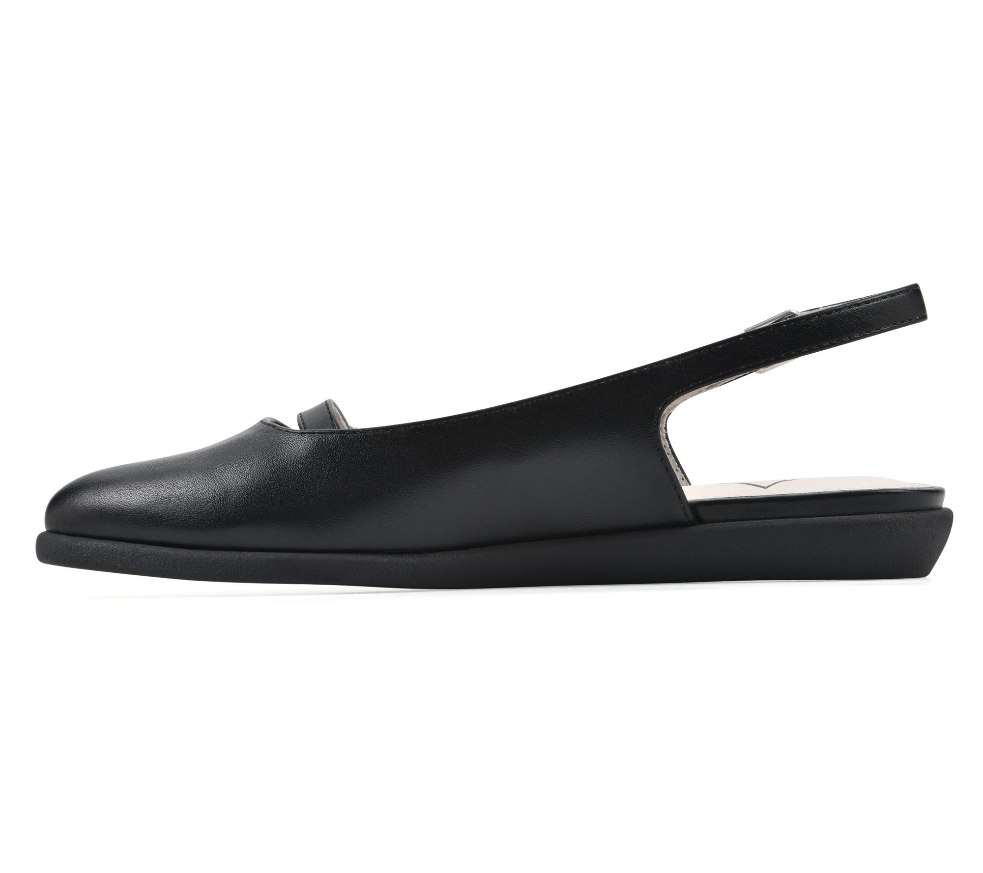 • Buckle closure; tapered almond toe; open-back slingback design
