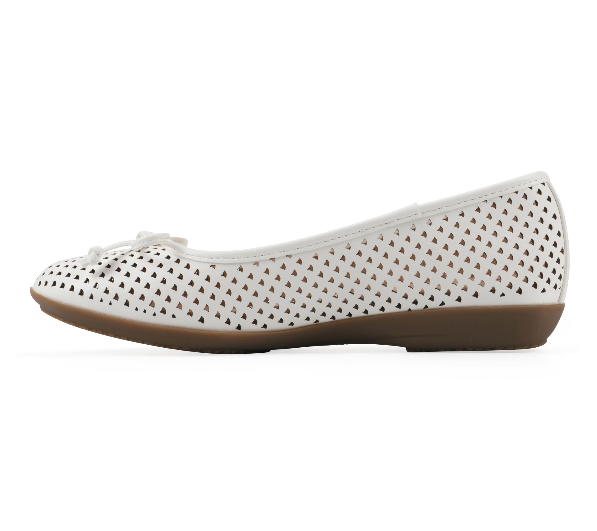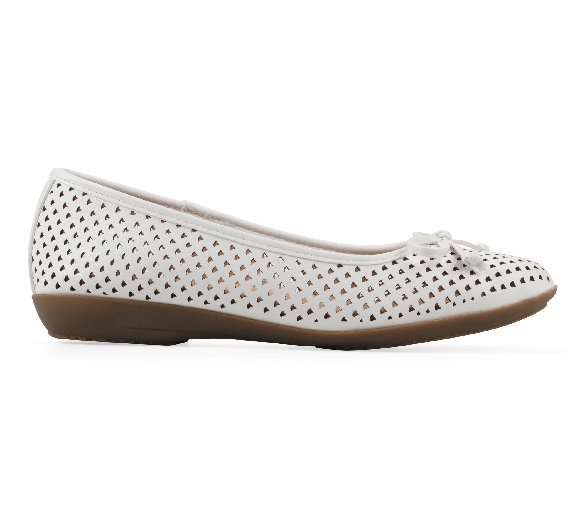 Slip-on style, perforated upper with bow detail, rounded toe